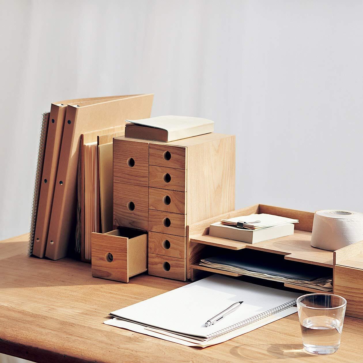 インテリアになじむよう、表面にオーク材をつかって仕上げました。デスク上の物を整理するのに便利なサイズです。
