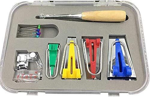 含まれるパッケージ:ミシンキルティングツール(4サイズ)、Awl、ボールポイントピン、可変バイアスバインダーフット