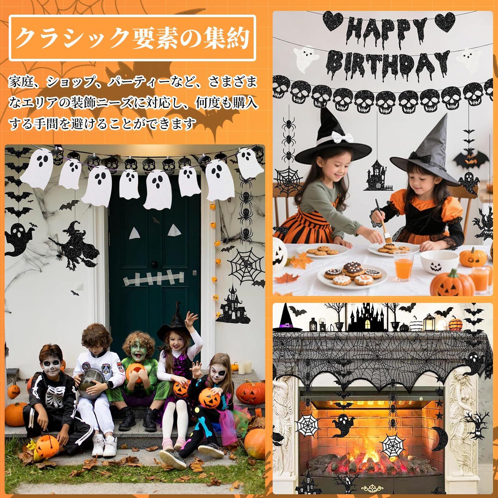 【簡単に取り付け可能】どなたでも簡単に装飾できるように設計されており、手軽に飾り付けを楽しむことができます。さまざまな場所にフィットし、ちょっとしたスペースをハロウィン一色に変身させるお手軽アイテムです。ハロウィンの準備を手早く整えましょう!