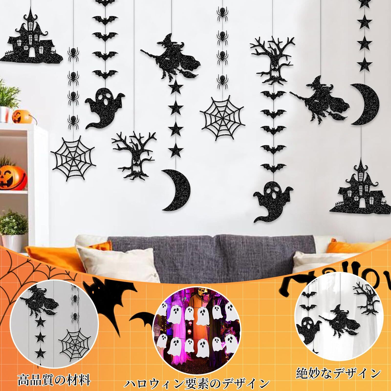【インテリアとしても活躍】このハロウィン飾りは、イベントだけでなく、日常のインテリアとしても楽しめます。お部屋に遊び心を加え、おしゃれな雰囲気を演出します。限られたシーズンを彩るための素敵なアイテムとして、ぜひ取り入れてみてください。