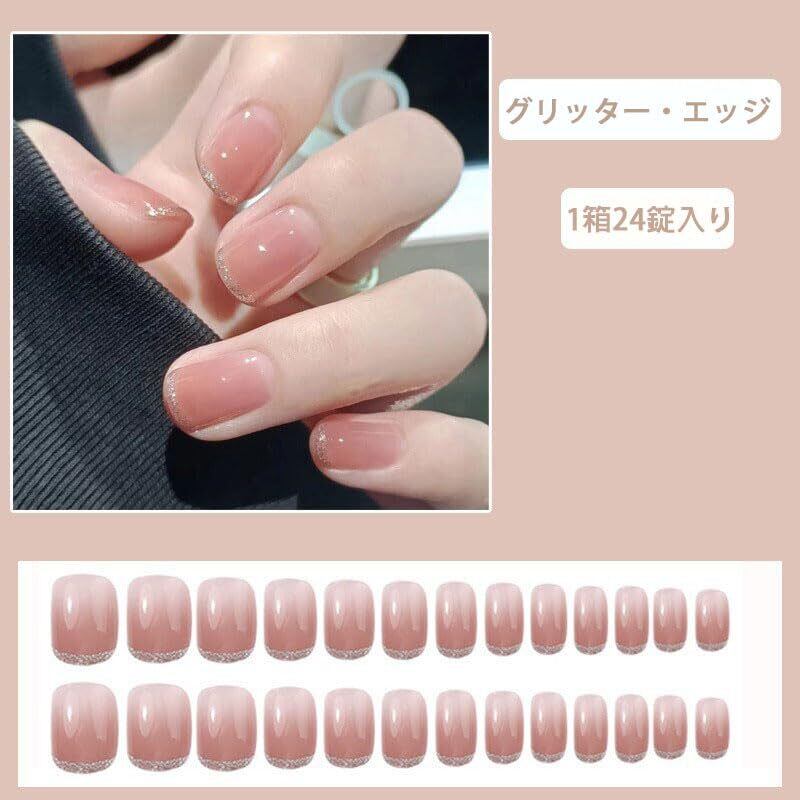 【人気商品】YINKE ネイル チップ 24枚入 ネイルチップ ショート ネイル用品 春夏 ラウンドチップ 人気 和風 シンプル おしゃれ ショート雰囲気色 光沢 つけ爪 成人式 入学式 卒業式 結婚式 両面テープ ウッドスティック ネイルファイル付き (グリッター・エッジ)