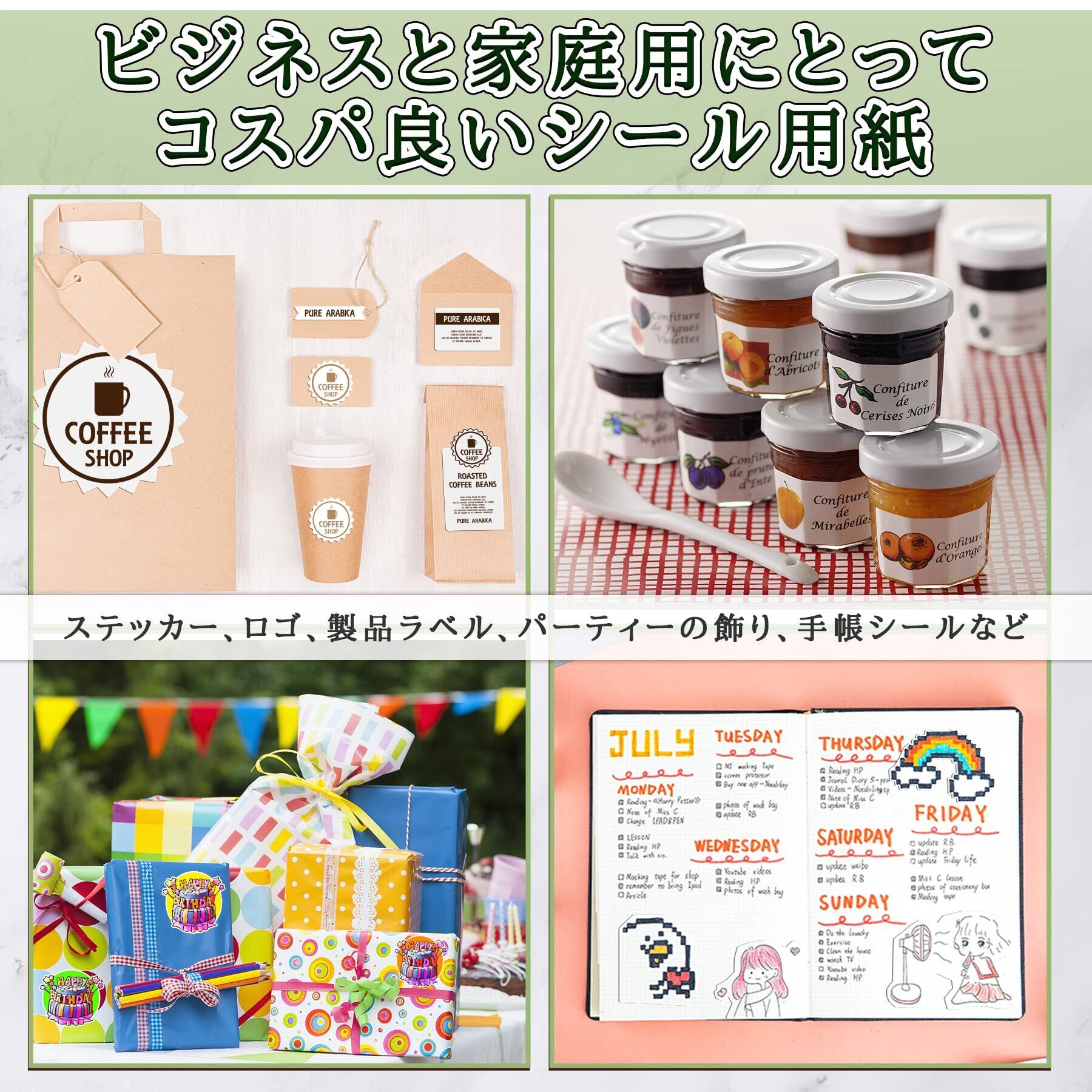 オススメの適用シーン:オフィス、学校、家庭、ビジネス用にぴったりです。写真ステッカー、宛名ラベル、出荷ラベル、表示ラベルおよび食品、文房具、工芸品、パーティーの飾り、クリスマス、新年のDIYギフトなどに最適です。一年間
