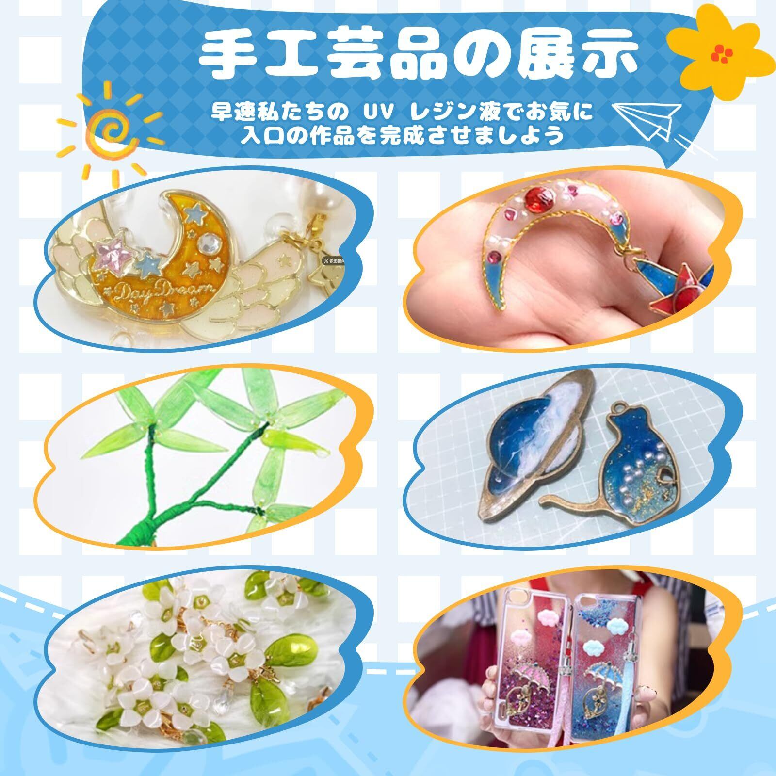 UV-LEDサポートと速い固形:UVランプやLEDランプの両方に対応し、短時間で硬化するuvレジン液です。太陽光でも固まるため、室内外問わず快適に使用可能。初心者から経験者まで誰でも扱いやすく。