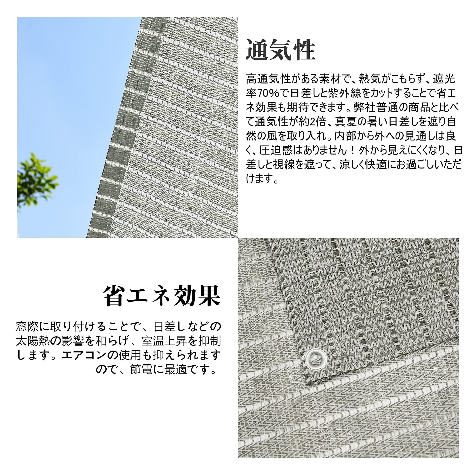 紫外線に強い、蒸し暑さの減少するほか、他人の視線をしっかり目隠し。目かくしや日よけ、物の転落防止など用途は様々です。場所を選ばずお使いいただけます。