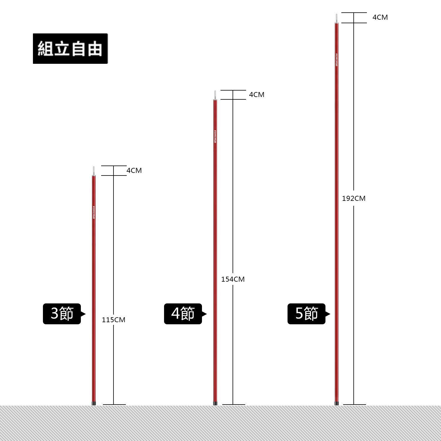 ポールとポールの間に連結金具があり、差し込めば簡単に接続出来ます。説明書など要らずに誰でも簡単に使えます。分割式のポールは状況に合わせて適度な高さを調整して、様々なところで利用できます。