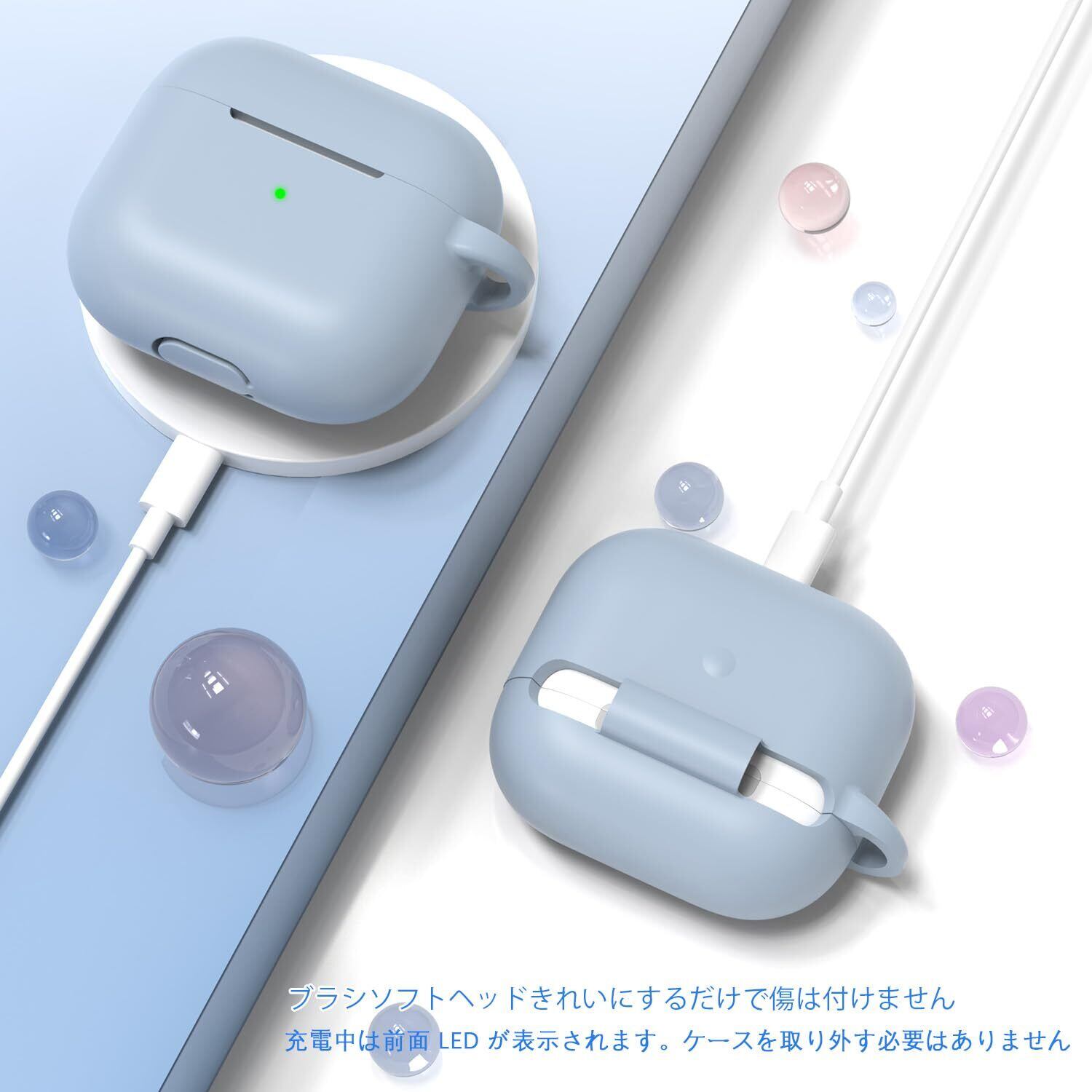 AirPods 第 3 世代ケースカバー 2021、軍用グレードの落下防止ソフトシリコン衝撃吸収保護保護 AirPods 3 ケーススキン、キーチェーンとクリーニングキット付き、フロント LED 可視、スカイブルー