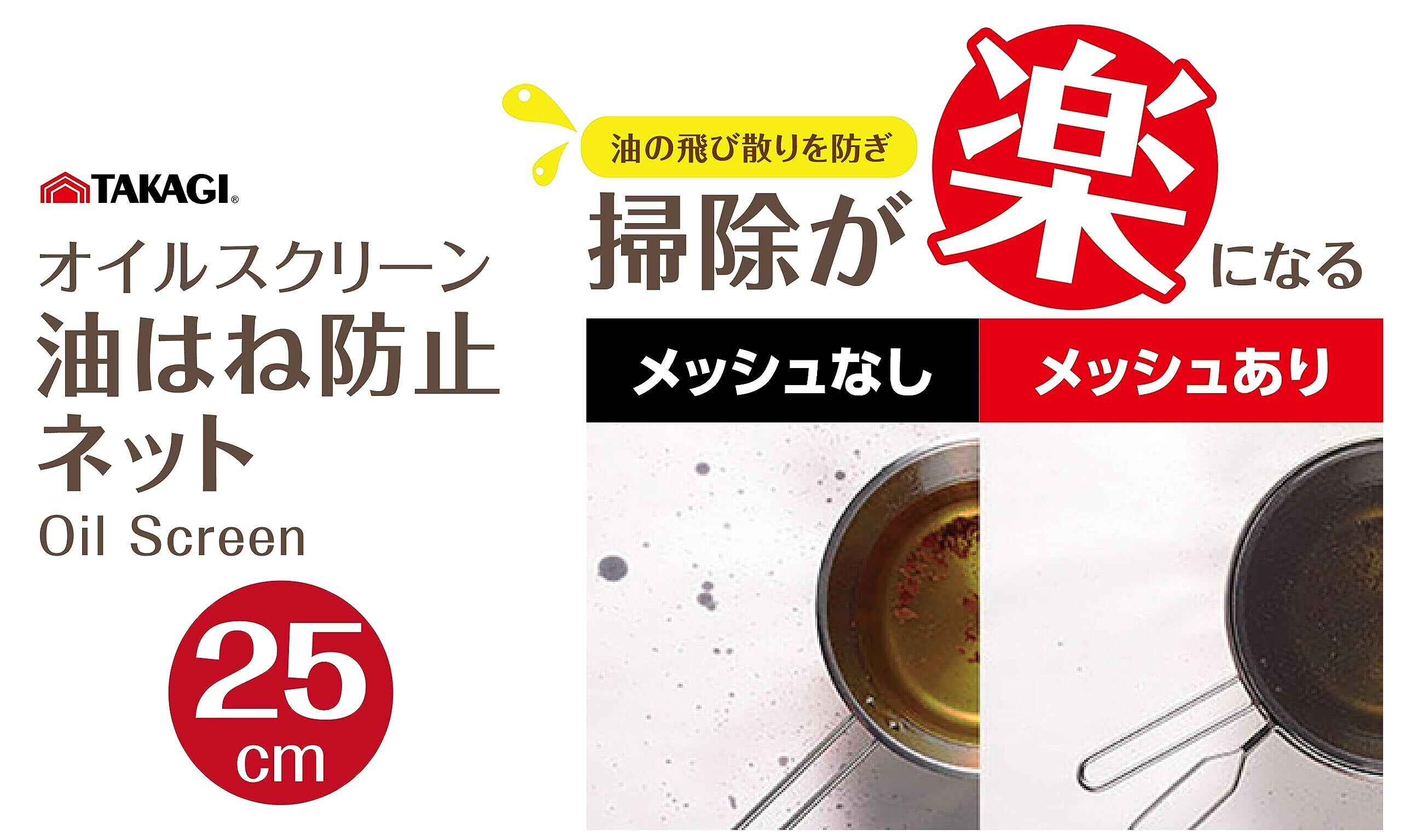 髙儀(Takagi) オイルスクリーン油はね防止ネット 25cm ステンレス 揚げ物の油はね防止 油ハネガード 油切り ガード 揚げ物料理 調理器具 キッチン