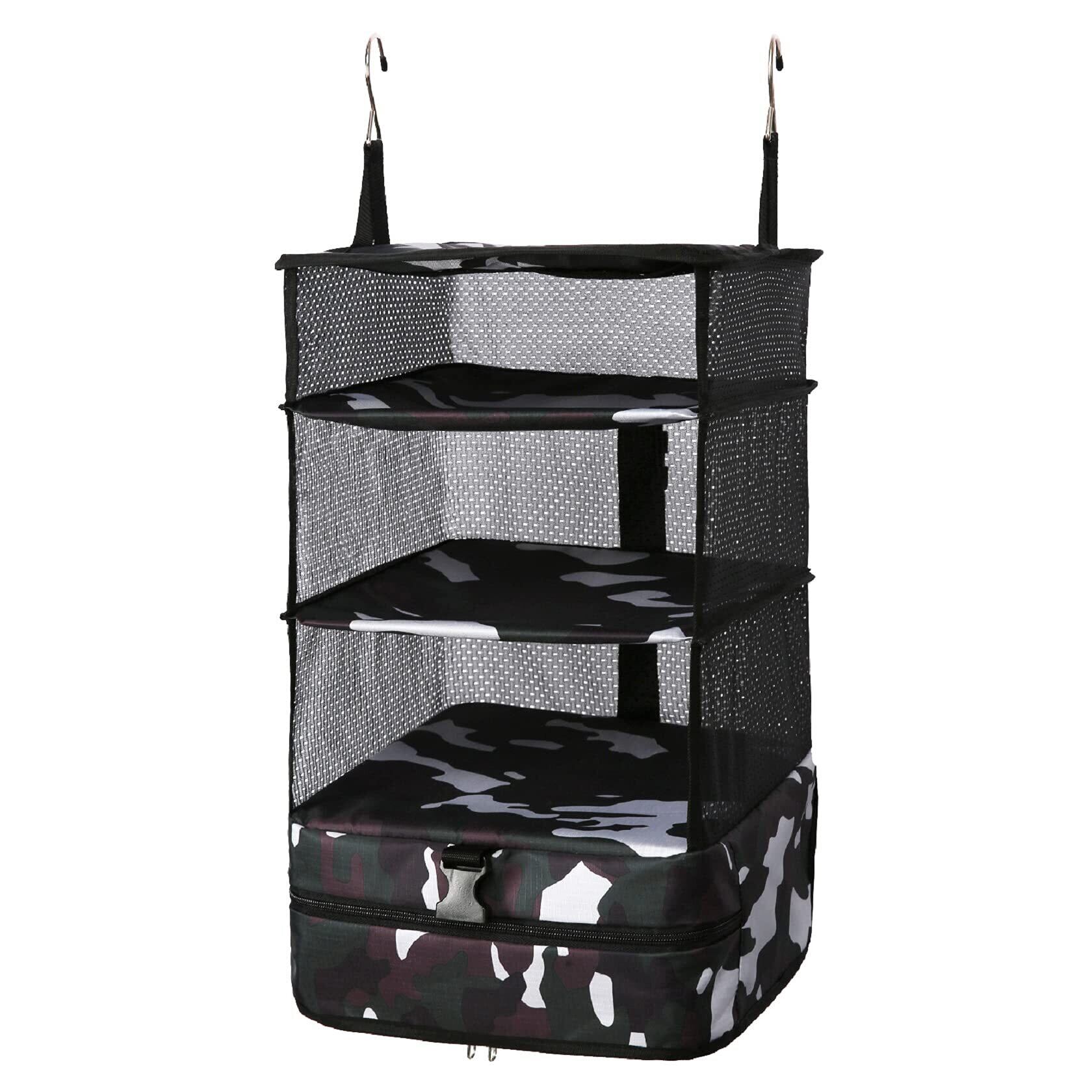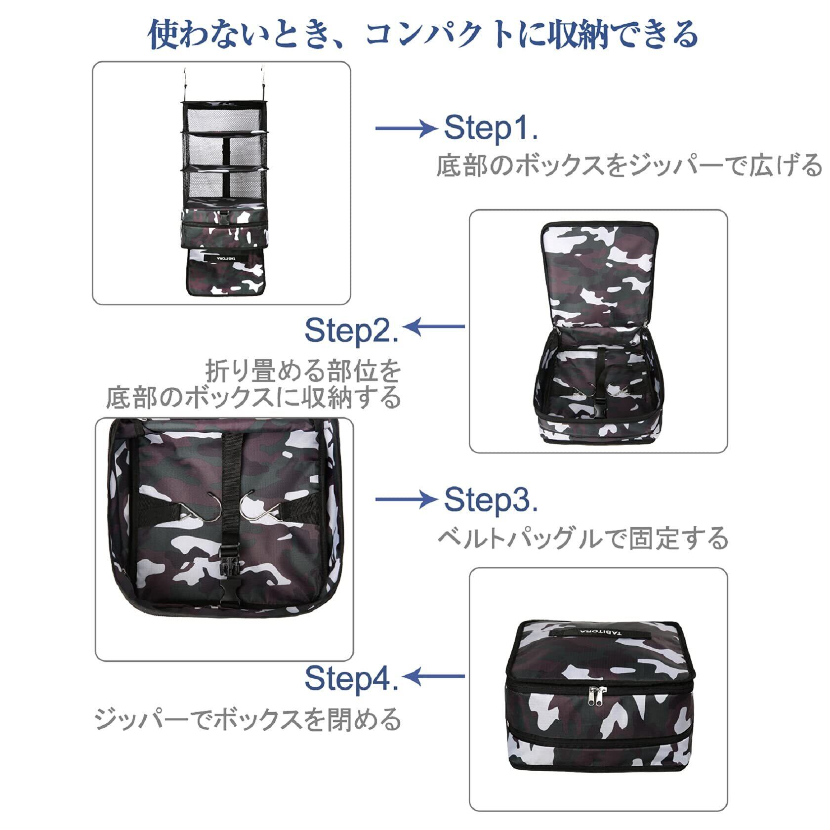 【新着商品】[タビトラ] クローゼット吊り下げ収納 インナーバッグ 衣類ラック 収納 旅行 出張 クローゼット 収納ボックス 吊り下げ 省スペース 大容量 衣装ケース 4段 取付簡単 折り畳み式 (カムフラージュ, Large)