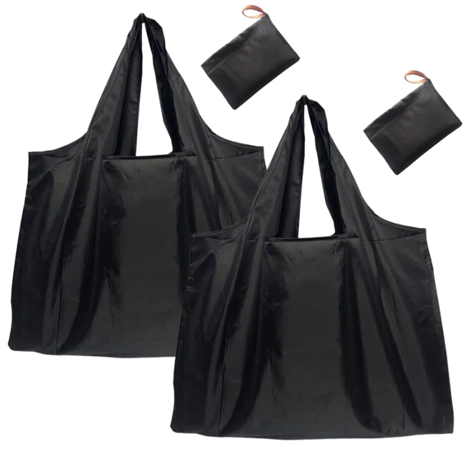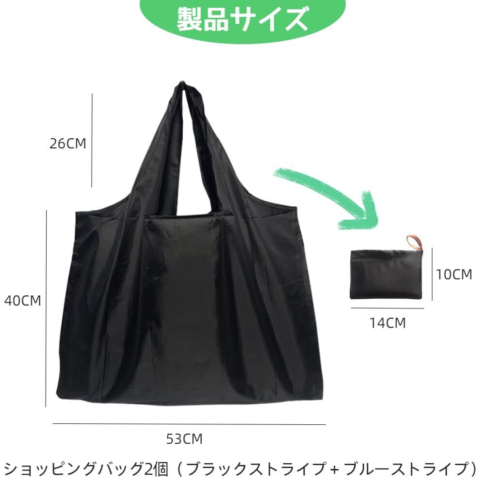 【内容】エコバッグ2個(ブラック)、展開サイズ:53CM×66CM、折りたたみ後サイズ:14CM×10CM。