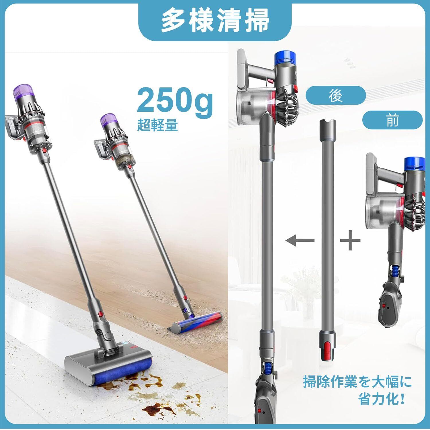【ワンタッチ取り付け 数分でセット完了】長期使用で延長ロッドが曲がり・ガタつきやすく、吸い込み力が低下し汚れを除去できません。交換することで接続安定性を回復、本体本来の強力な吸引力を発揮し、掃除効率を UP!クイックリリース機構を採用,専門工具や技能は不要。ワンタッチ操作で簡単に取り付け・取り外しが可能,わずか数分でセット完了し、すぐに掃除を開始できます。