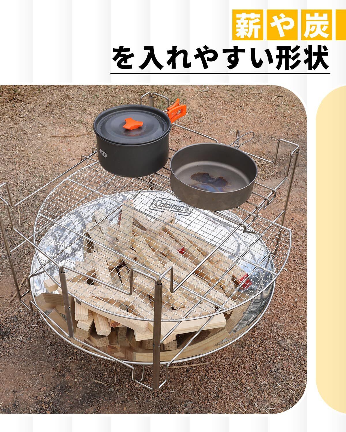 【1秒展開】1秒で展開し、2秒で設置可能。複雑な設置手順を最大限に解消し、Coleman(コールマン)ファイヤーディスク焚き火台と完璧に一緒に収納でき、最先端で最も便利な新しいファイヤーディスク専用をお届けます。(本商品は五徳のみ,焚き火台付きません)