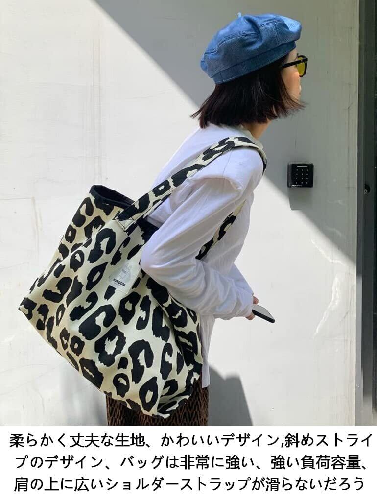 [WiViVi] トートバッグ レディース キャンバス 丈夫な厚手素材 レオパード柄 とーとばっく レディース 大容量 手提げバッグ トートバック キャンバストート tote bag 大きな布バッグ 帆布(黒-レオパード柄)