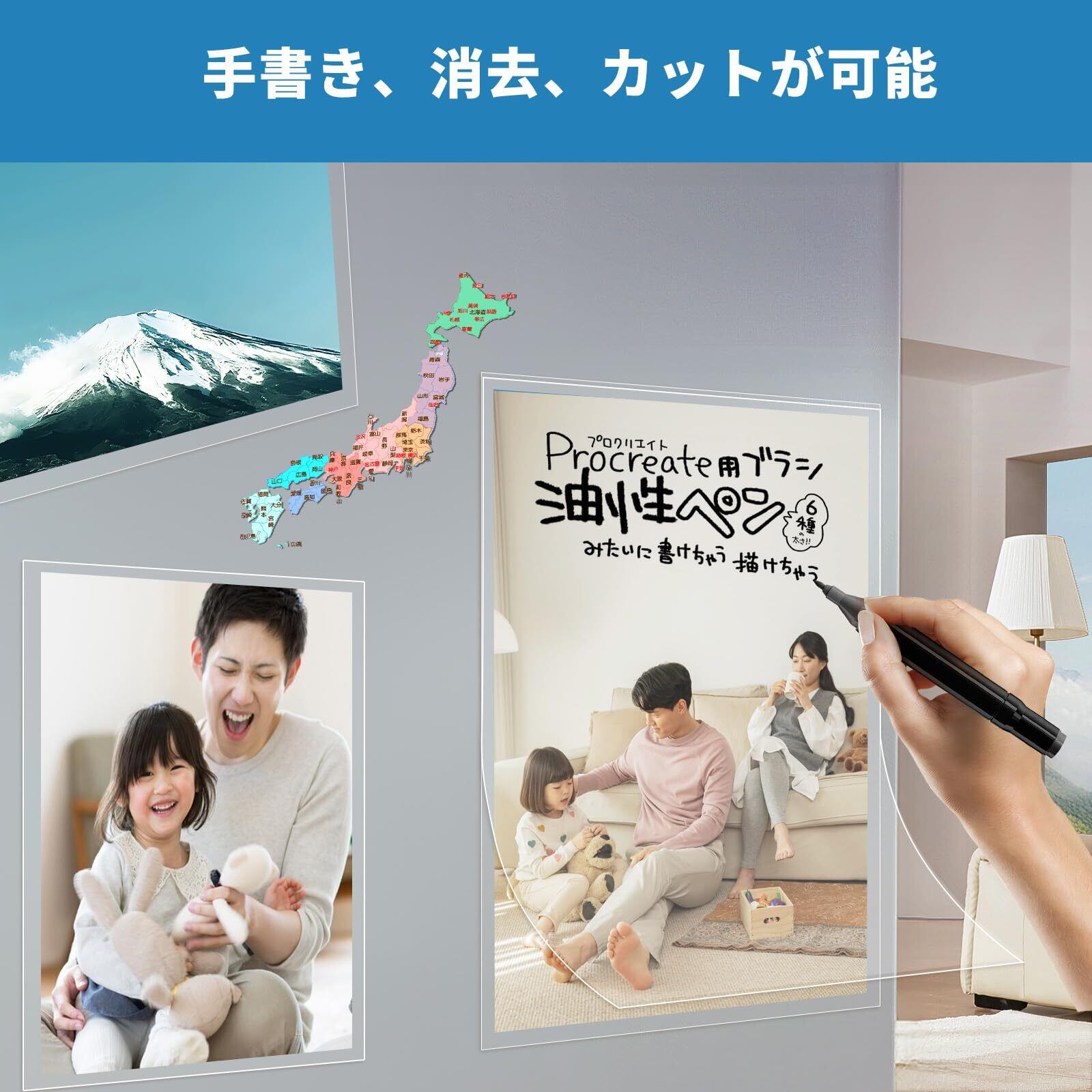 3ステップで完了 - 保護フィルムを剥がし、アイテムを粘着面に押し付け、余分を切り取れば完了です。特別な技術不要で、初めてでもプロ並みの仕上がりができます!