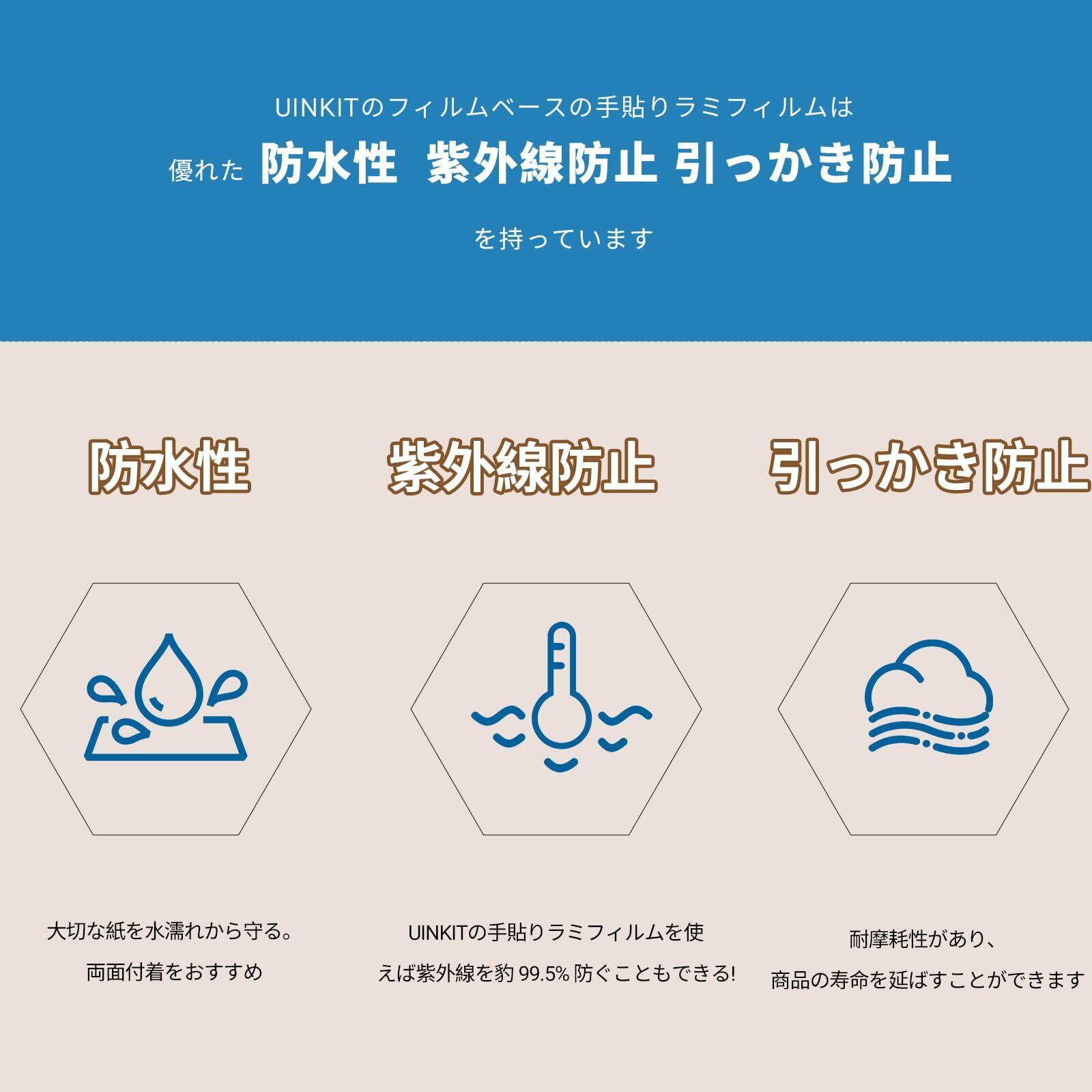【特価セール】Uinkit 独自接着カバーフィルム 100μm A4サイズ、100枚入 機械不要、その場で簡単ラミネート 手貼りラミフィルム, ラミネートフィルム、コーティングシート