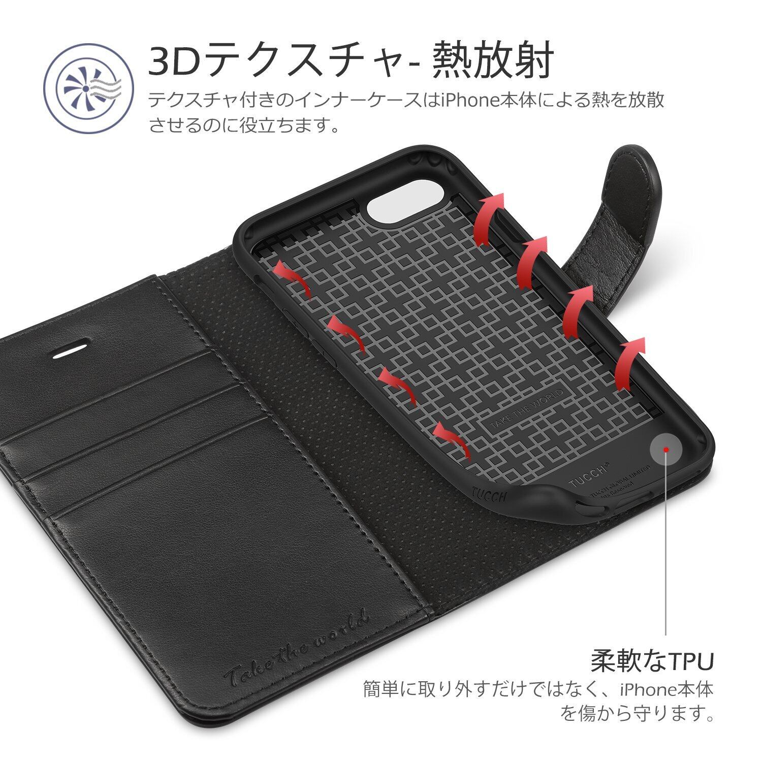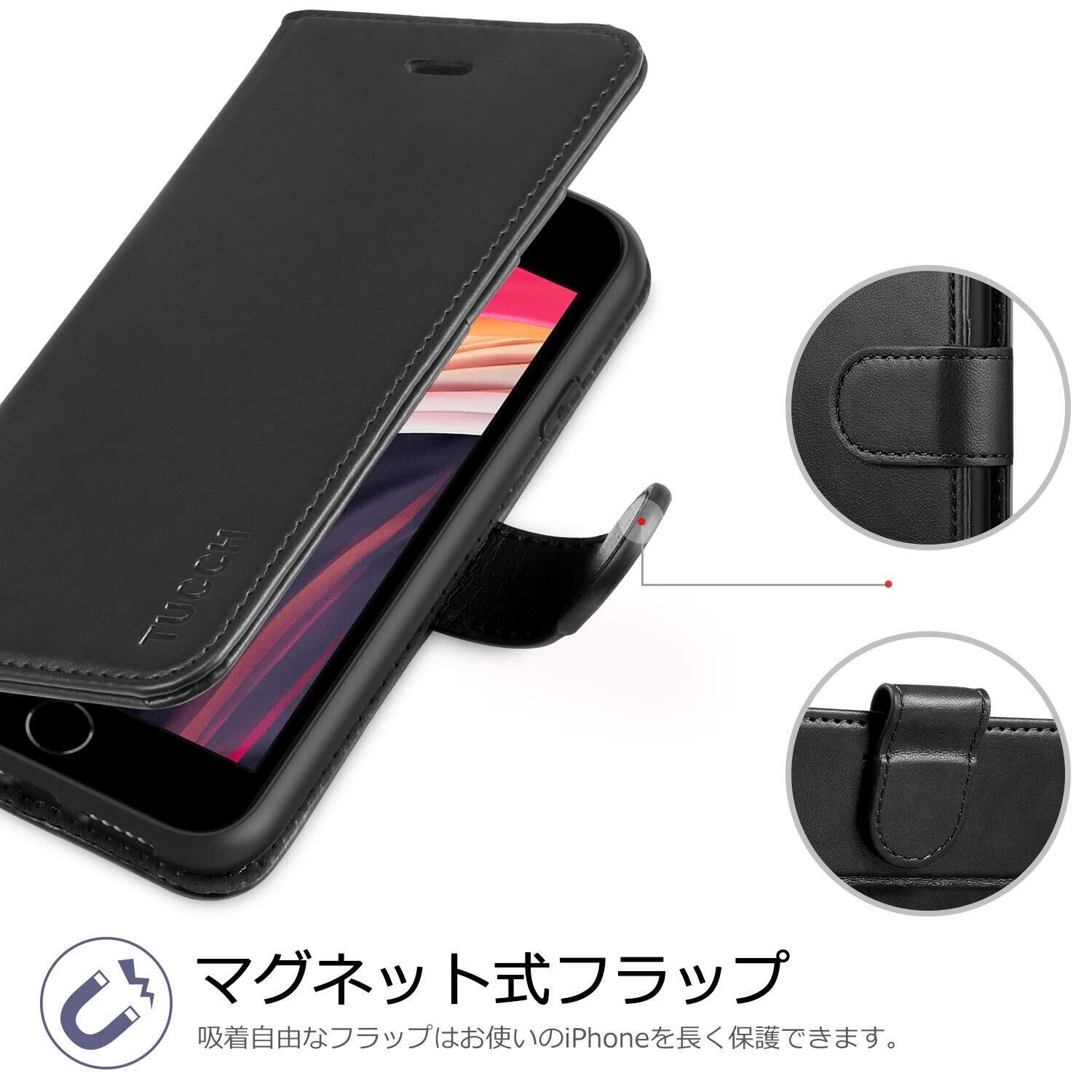 TUCCH iPhone SE 対応 ケース 第3世代 アイフォンse3 手帳型 あいほんSE2カバー カード収納 マグネット スタンド機能 耐衝撃 耐摩擦 PU合皮 アイフォン7手帳型カバー iPhone7/8/SE2/SE3 4.7インチ対応 ブラック