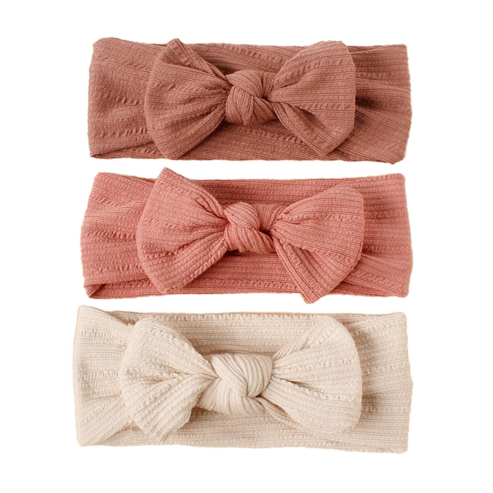 DFsucces ヘアバンド ベビー ゴ ヘアアクセサリー 蝶結びや かわいい 髪飾り 新生児 出産祝い 誕生日 記念撮影 お祝い 結婚式 3点セット (ダークピンク+ピンク+ベージュ)