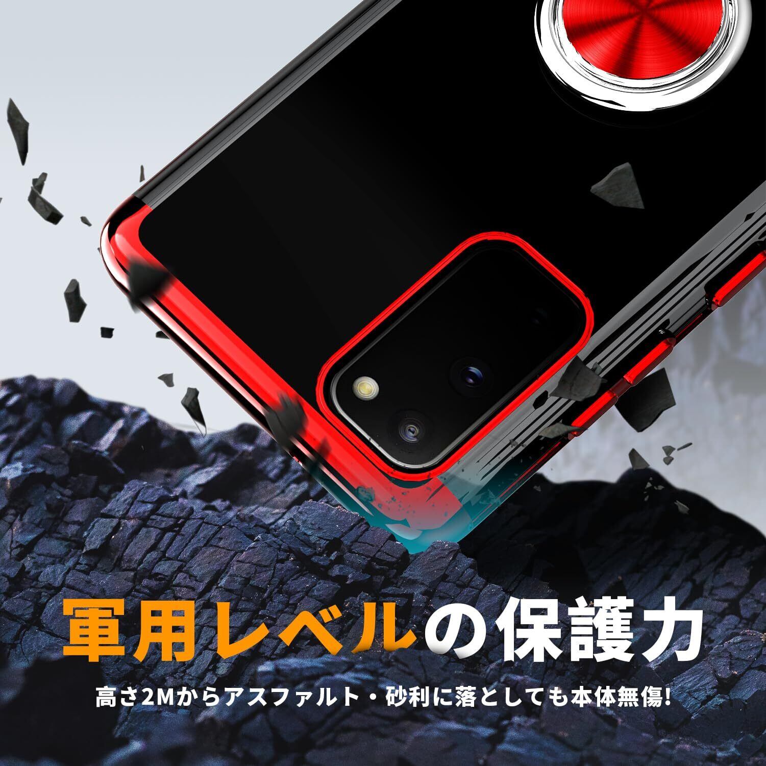 ケース 対応 Xperia 5 II 用の ケース リング クリア 耐衝撃 SO-52A SOG02 カバー 透明 TPU 軽量 薄型 ストラップホール付き 黄変防止 360°回転 車載ホルダー 赤 2-XP5 Ⅱ-03