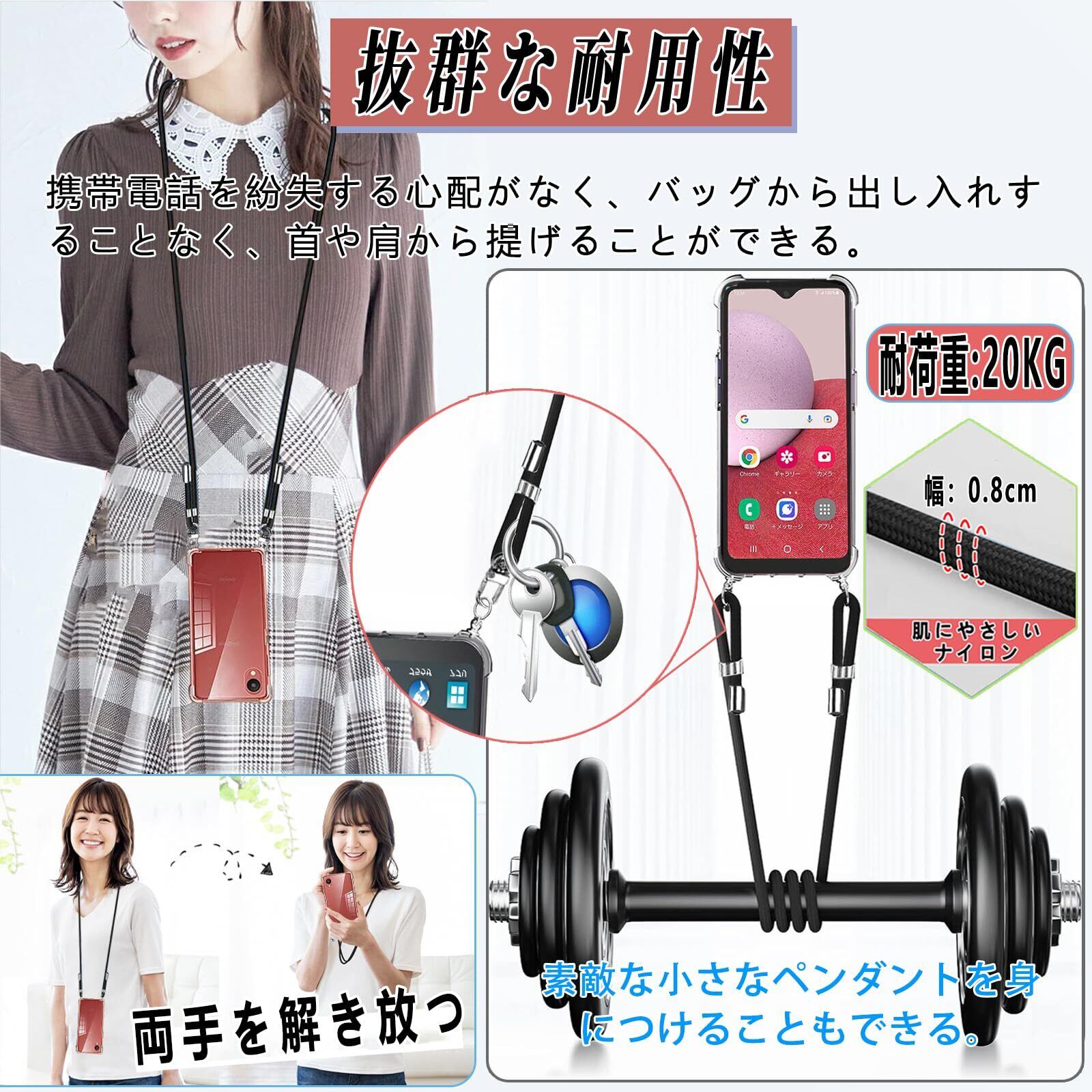 【携帯Galaxy A23 5G ケースストラップ2枚付き & 両手解放】本Galaxy A23 5Gケースにはフィンガーストラップとネックストラップが付属します、このネックストラップは、ボタンを押すと、カチッと外せて取り外しが簡単です。急な着信、メールやネット使用時、スマホやデジカメで撮影したいとき、改札でICカードをタッチしたい時などもネックストラップの煩わしさを感じずに、ストレスフリーに使えます。実験により、ストラップは、約15KG(約200個のiPhone Plusの重量)の引く力に耐えらます (あなたは受け取るでしょう:1x Galaxy A23 5G用ケース + 1xフィンガーストラップ + 1xネックストラップ)