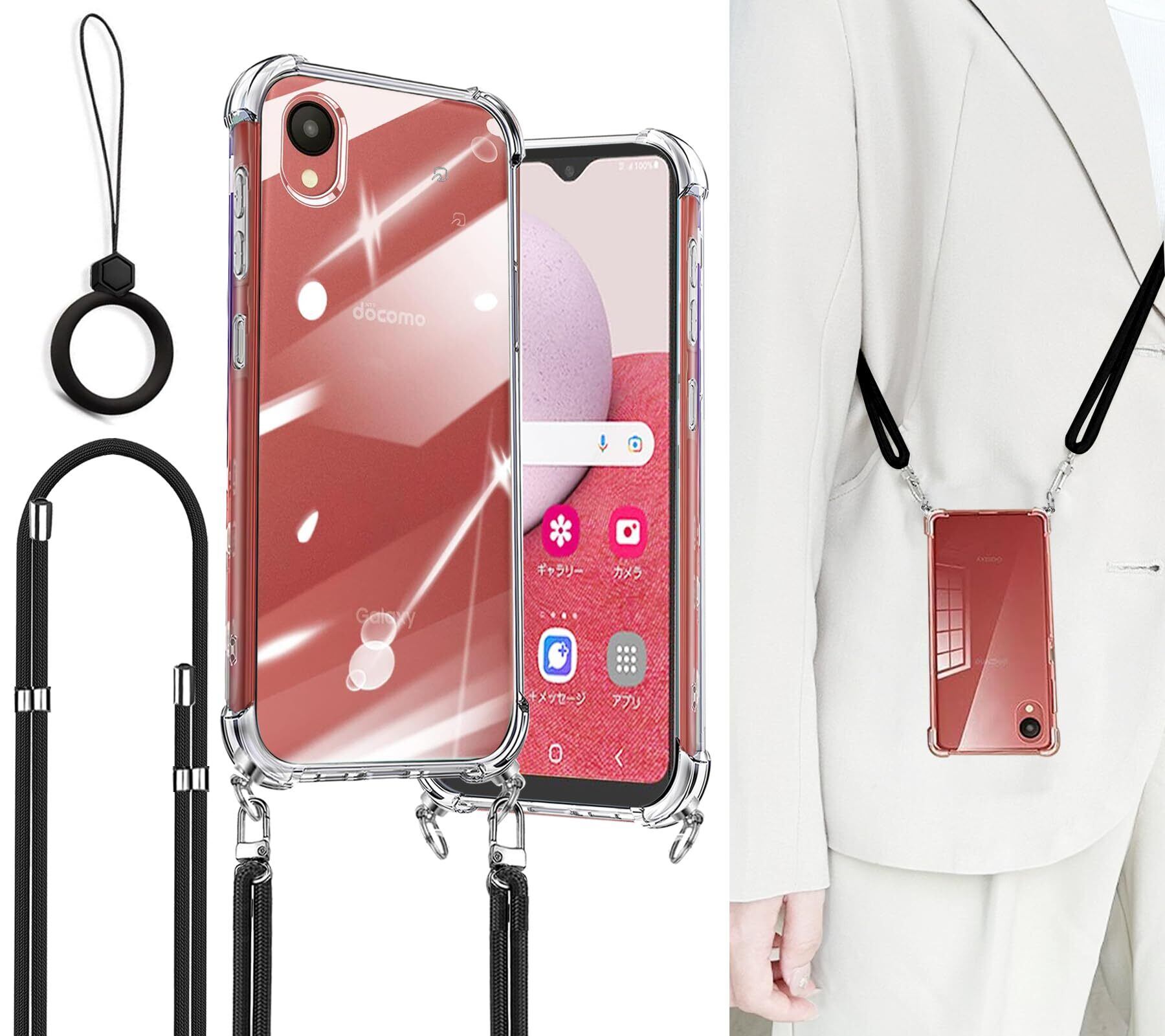 Ausrann Galaxy A23 5G ケース SC-56C SCG18 カバー ショルダー ストラップ2枚付き 紐付き 首掛け 肩がけ 斜め掛け ストラップホール付き ギャラクシー A23ケース 薄型 軽量 耐衝撃 シリコン TPUバンパー 黄変防止 全透明 米軍MIL規格 ワイヤレス充電 スマホケース Galaxy A23 5G(クリア)
