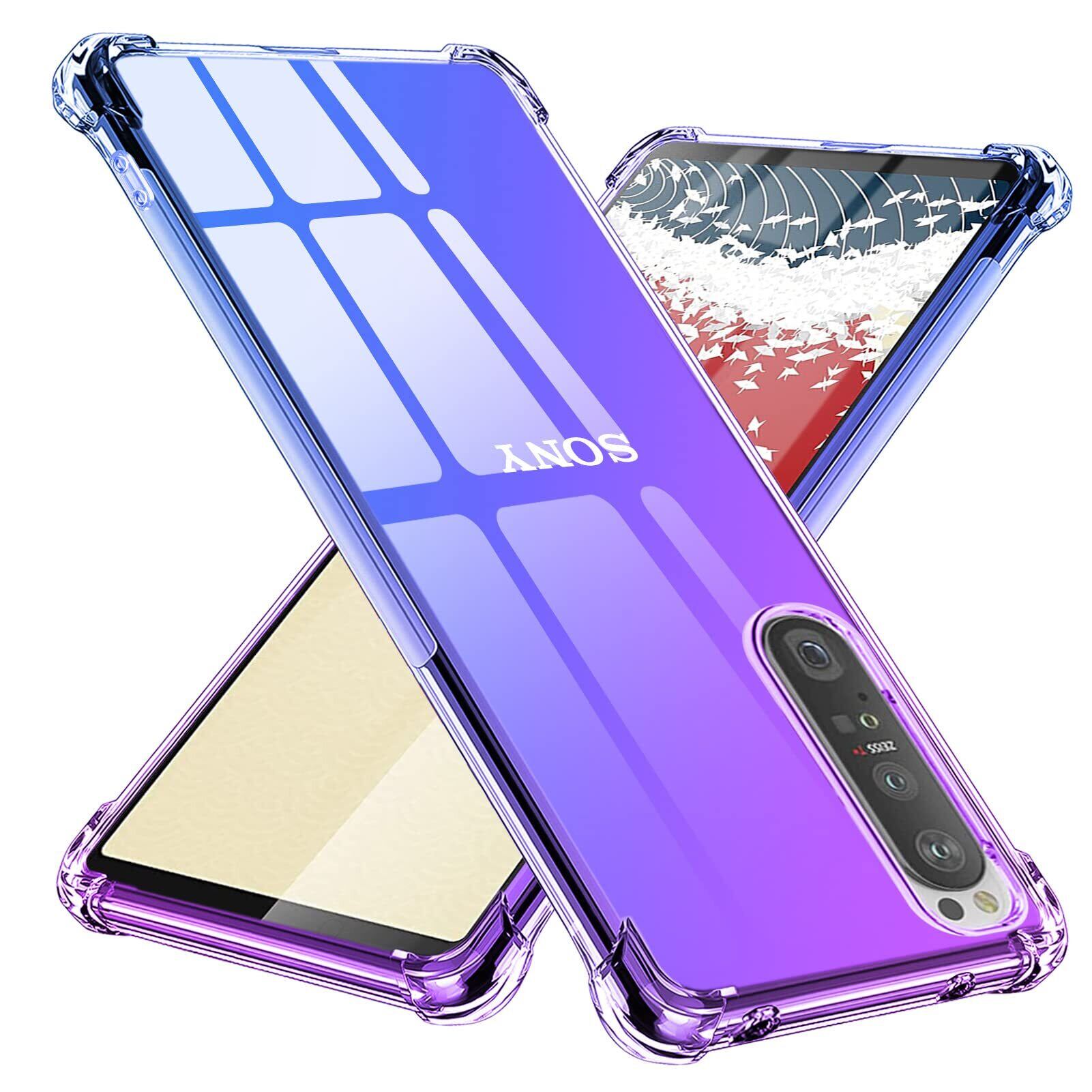 Xperia 1III ケース シリコン クリア グラデーション ソフトケース 薄型 軽量 SO-51B SOG03 ケース 耐衝撃 レンズ保護 エクスペリア 1 ii ケース 全面保護 tpu 四隅空気衝突防止 擦り傷防止 人気 携帯カバー 紫+青 MZ75-37