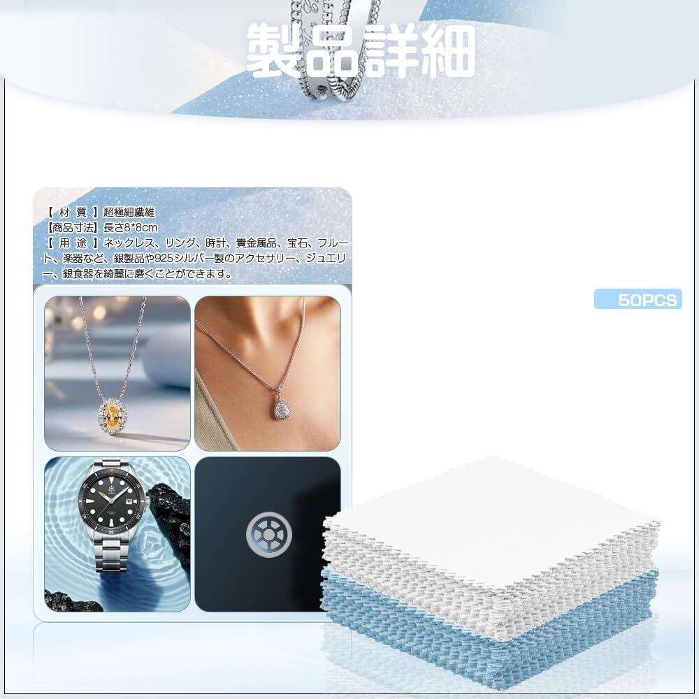 【2022最新】銀みがきクロス 8cm×8cm シルバー 磨き布 金属磨きクロス (50枚入り) 銀製品 超極細繊維 シルバー磨き 貴金属磨き 汚れ落とし 指輪 楽器 指輪/腕時計/ネックレス/銀製品/銀食器/楽器 艶出し 大判 高性能シルバー ホワイト25枚セット ライトブルー25枚セット