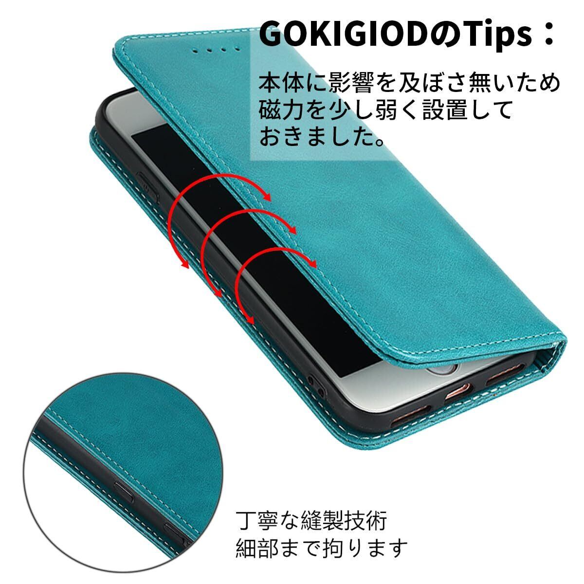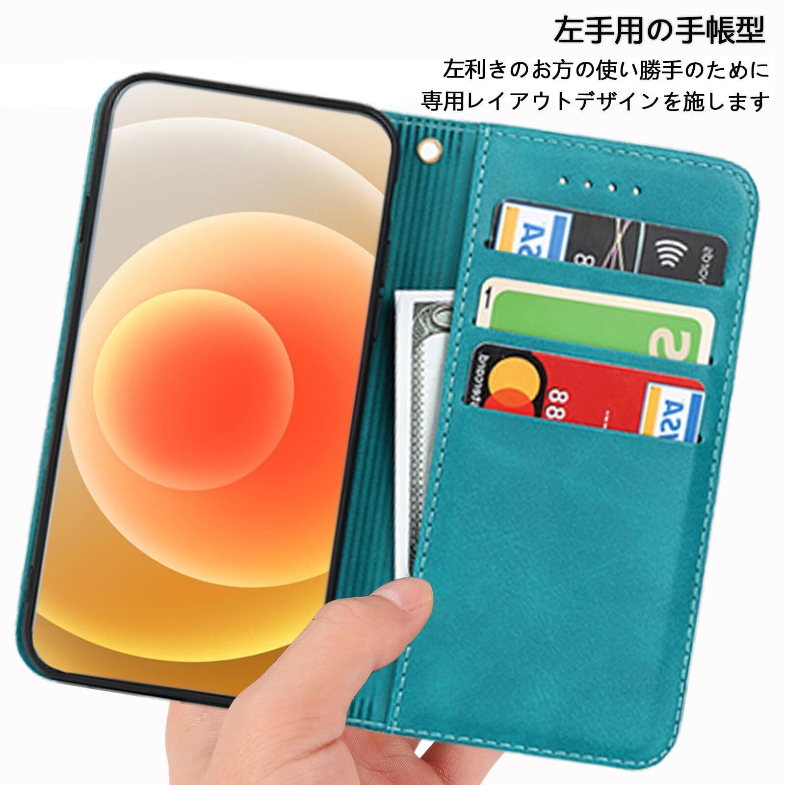 iphone 15 pro 左利き用 ケース 手帳型 ストラップ iPhone15pro 左手 手帳 適用 アイフォン 15 プロ 左利き アイフォン15プロ スマホケース 右開き カバー いphone15pro case phone15proケース 【GoKIGIoD】 左手用 財布型 内蔵マグネット 弱磁 スタンド カード収納 ストラップホール カードケース レトロ ターコイズ