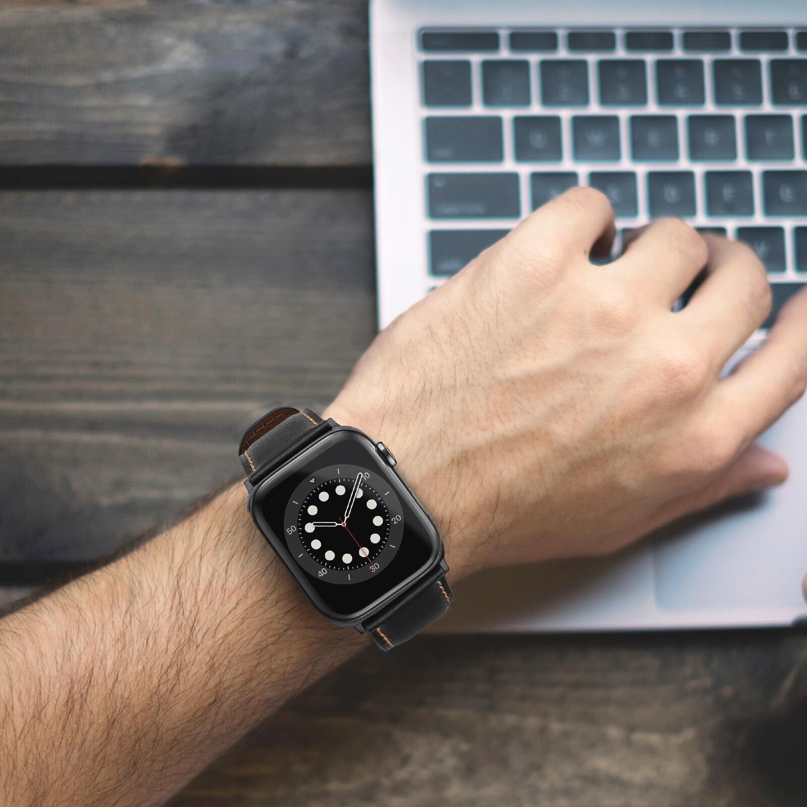 コンパチブル Apple Watch バンド 42mm(シリーズ 11/10) 41mm 40mm 38mmアップルウォッチ バンド, 高級 本革 交換バンド ビジネス Apple Watch シリーズ11/10/9/8/7/6/5/4/3/2/1/SE3/SE2/SE 用 (ブラック)
