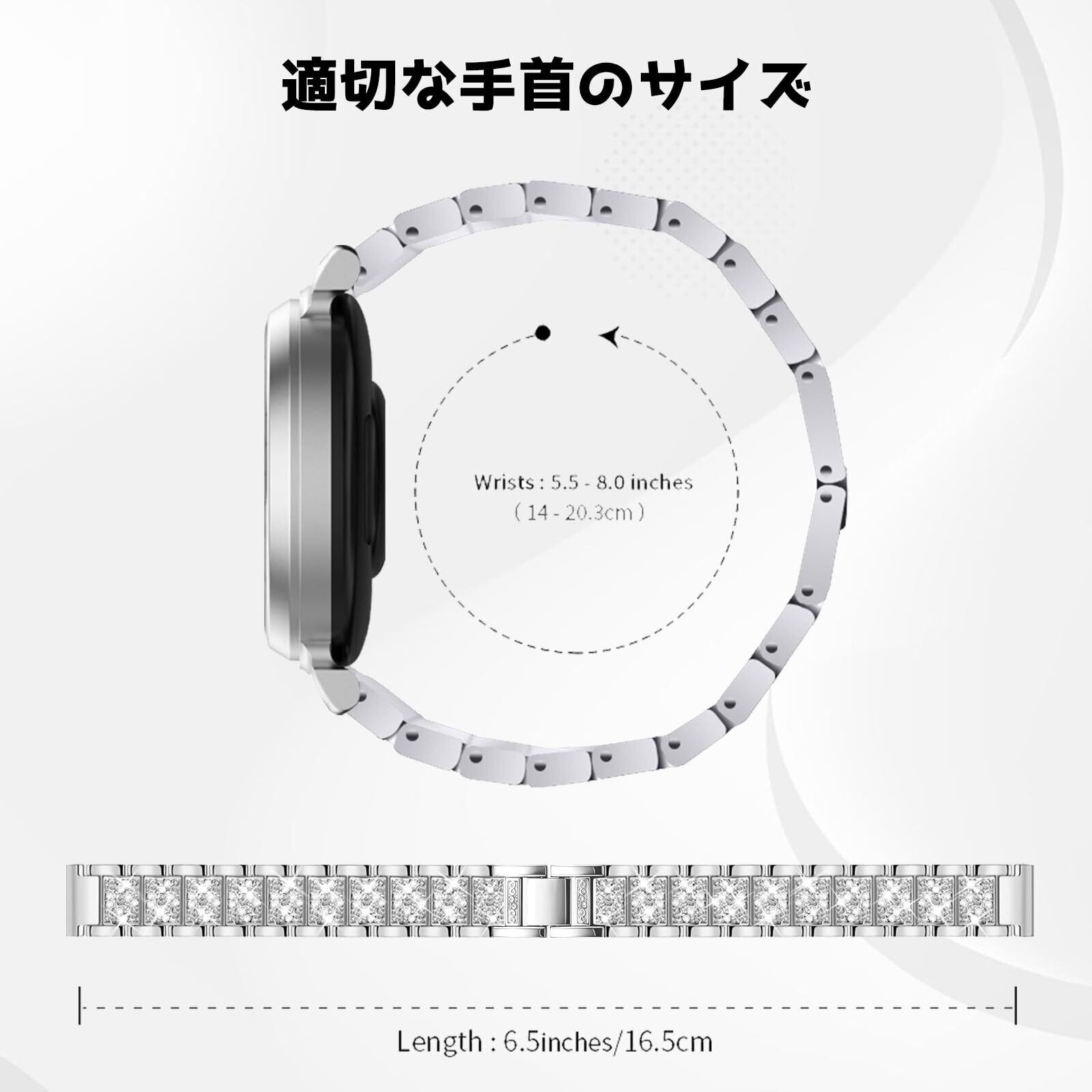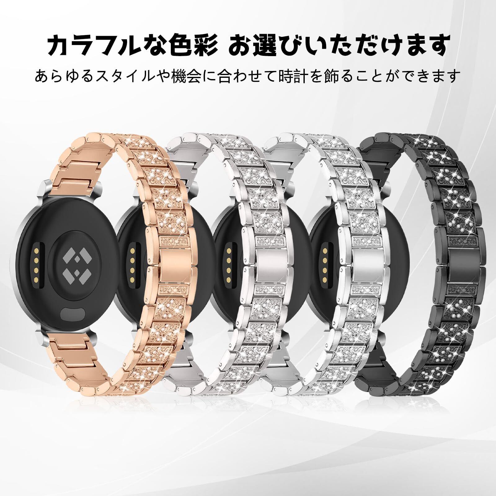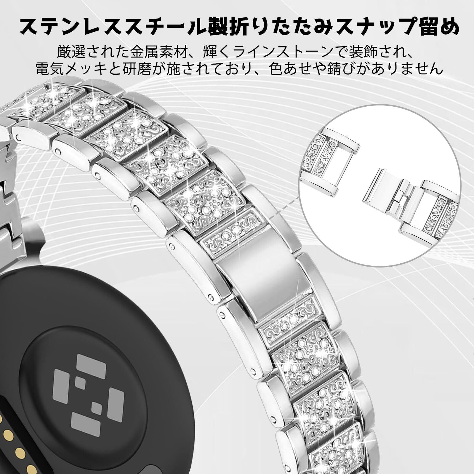 [KeeFos] バンド Garmin Lily 2 Active/Garmin Lily 2 対応 交換バンド ステンレス鋼 金属 替えベルト キラキラ ラインストーン付き 男女兼用 交換ベルト