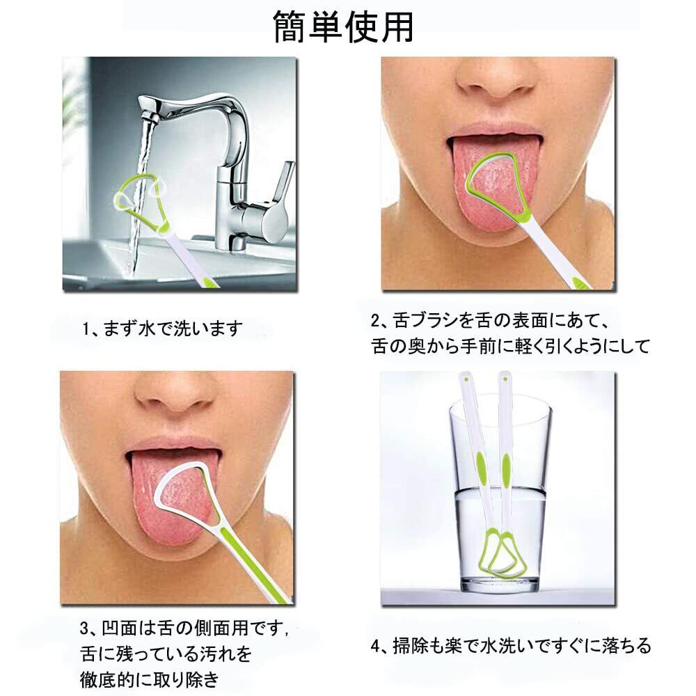 【簡単使用】毎日朝晩使います。舌ブラシを舌の表面にあて、舌の奥までシッカリ届くし持ちやすい。必ず舌の奥から手前に軽く引くようにして数回繰り返してください。また、凹面は舌の側面用です。舌に残っている汚れを徹底的に取り除き、息を新鮮に保ちます。口腔ケア、口腔環境改善。