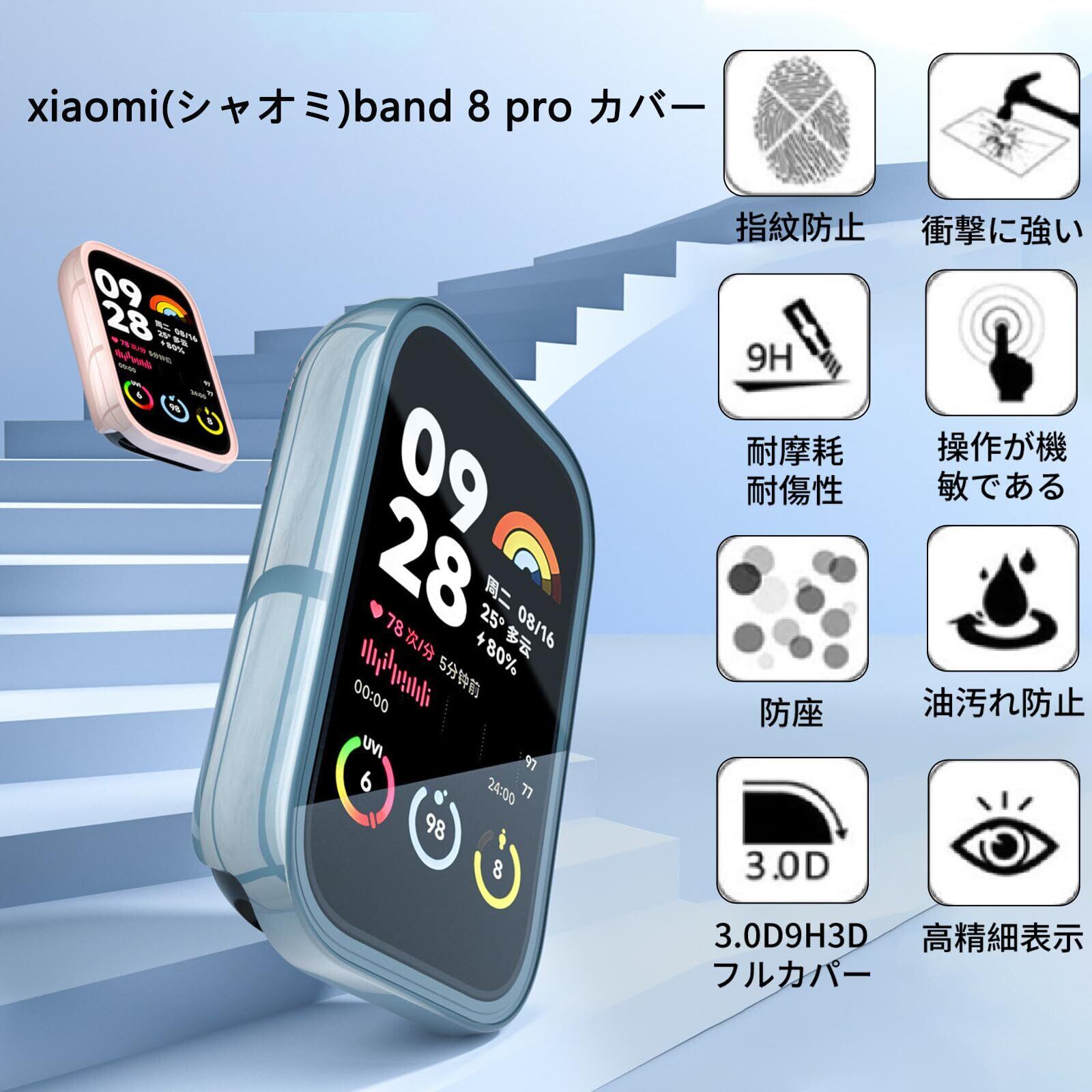 For Xiaomi Band 8 Pro カバー シャオミ(Xiaomi) Band 8 Pro ケース PC素材 カバー ガラスフィルム一体型 全面保護 二重構造 防塵 日本旭硝子材 キズ防止 軽量(クリア)