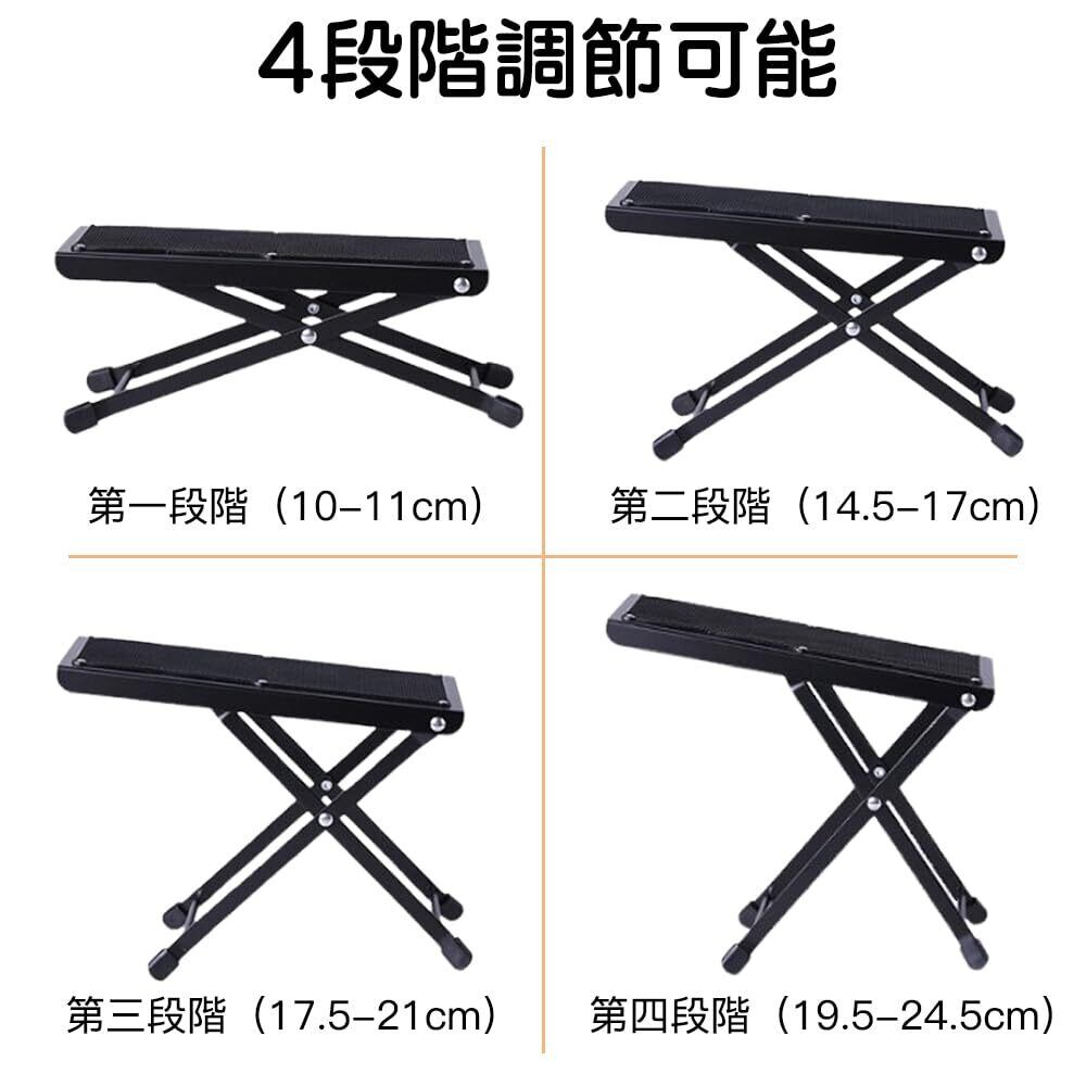 ギターペダル ギター 足置き 4段階高さ調整 フットレスト 折りたたみ式 ギター用 フットスツール 足台 高い安定性 滑り止めゴムキャップ付き 折りたたみ収納 軽量コンパクト