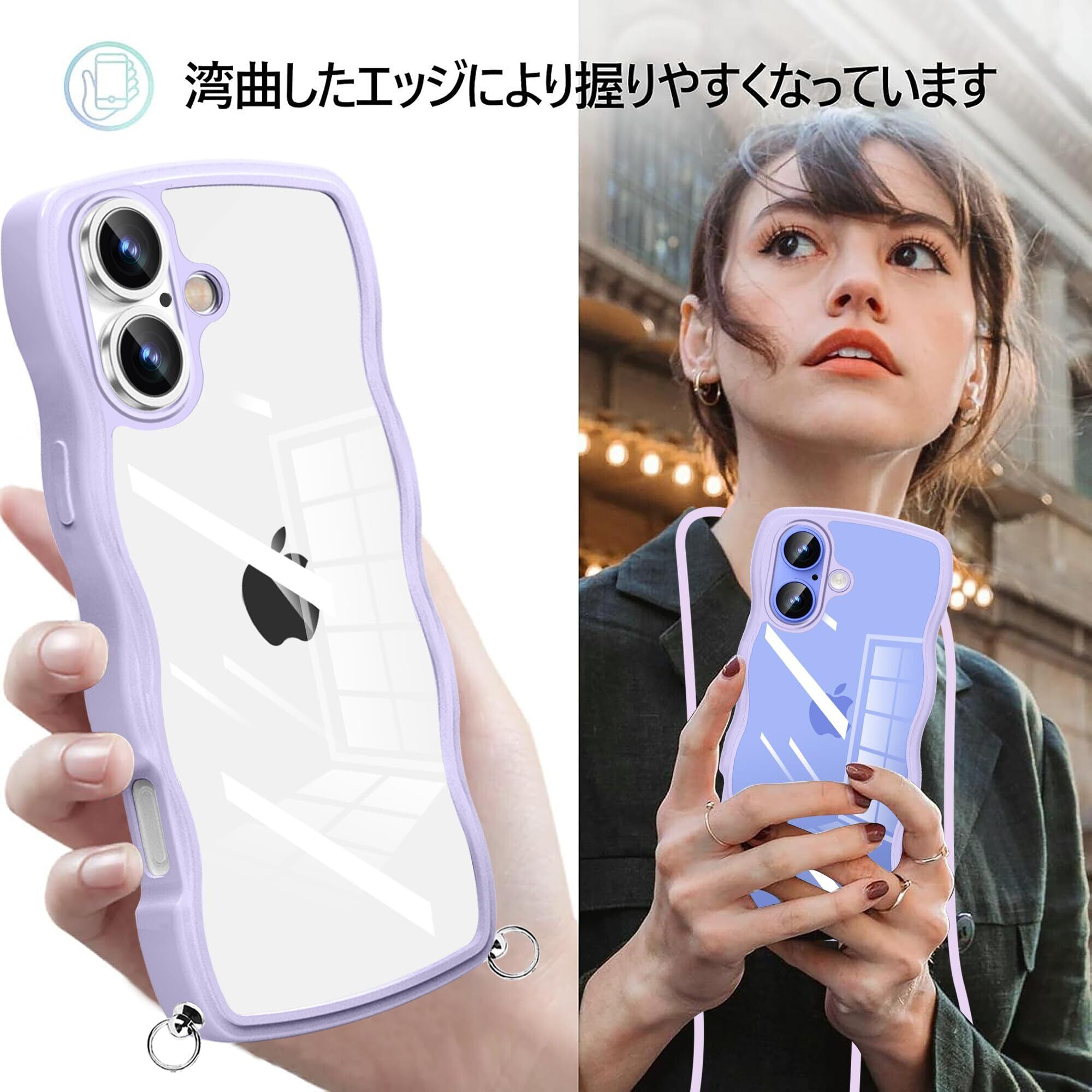 【新春セール】iPhone 16 Plus 用 ケース クリア ショルダー 耐衝撃 人気 かわいい アイフォン16 Plus 用 カバー 透明 スマホケース 薄型 軽量 首かけ 肩掛け 縄掛けケース ストラップ付き 取り外し可能 長さ調整可能 ワイヤレス充電対応(パープル)