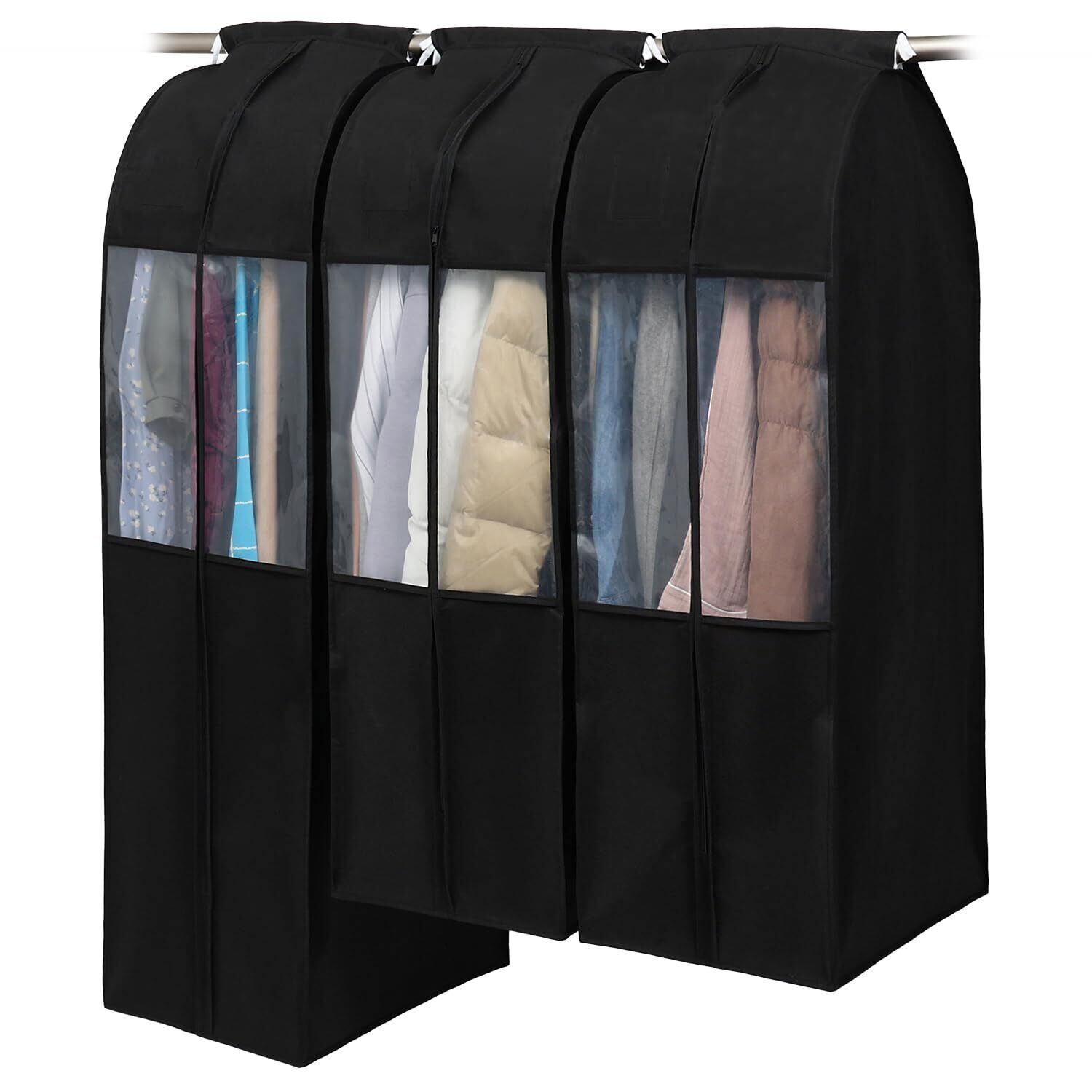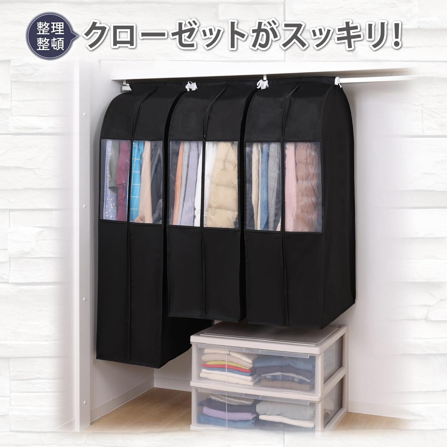 アストロ 衣類カバー ブラック 3枚組(ショートサイズ2枚&ロングサイズ1枚) 【幅広マチ付き 洋服カバー】 通気性の良い不織布製 クローゼット 吊り下げ収納 保護カバー 衣装カバー 衣類をまとめて収納できる ほこり除け 保管カバー 裾閉じ底付き 防虫剤入れポケット 透明窓付き 600-29