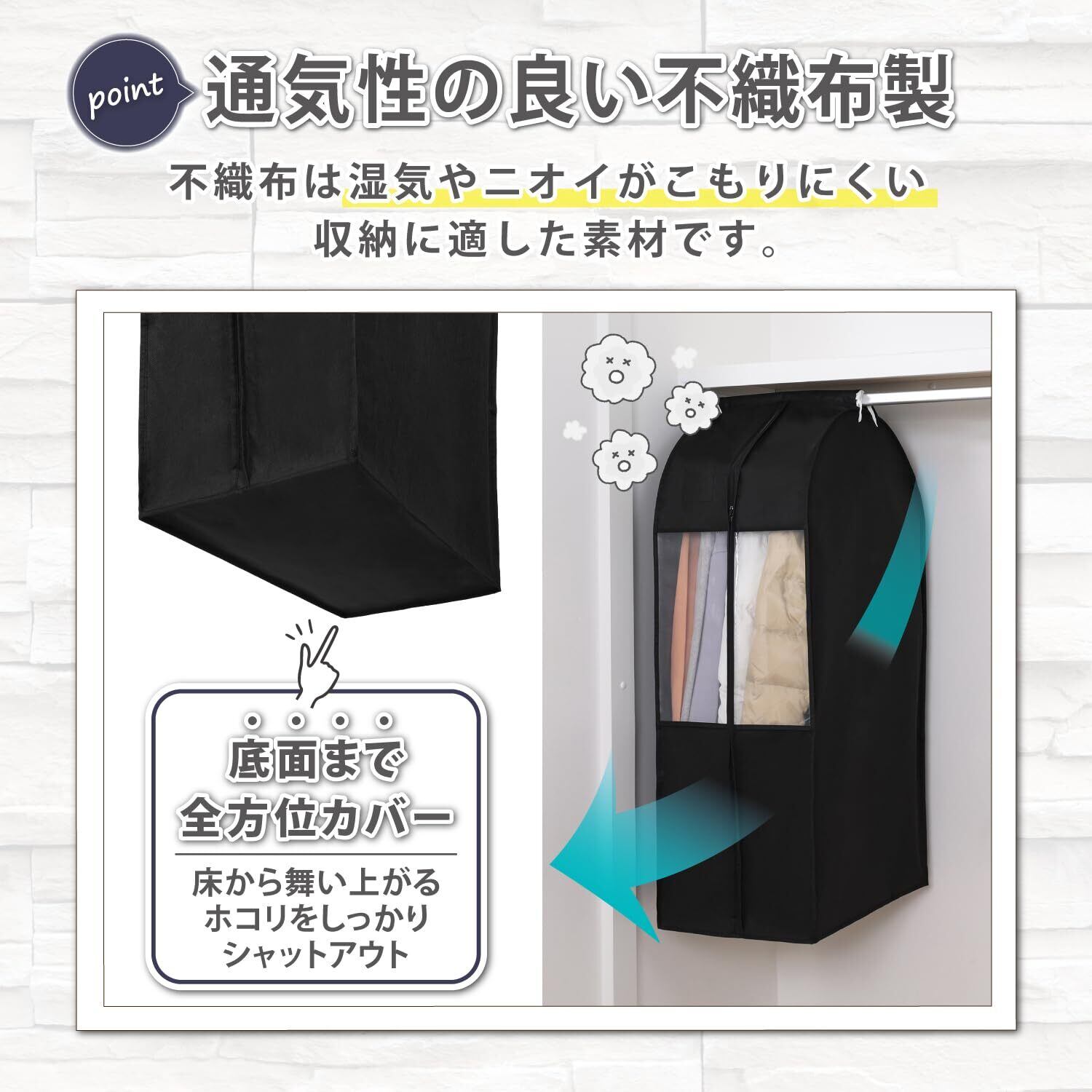 【数量限定】アストロ 衣類カバー ブラック 3枚組(ショートサイズ2枚&ロングサイズ1枚) 【幅広マチ付き 洋服カバー】 通気性の良い不織布製 クローゼット 吊り下げ収納 保護カバー 衣装カバー 衣類をまとめて収納できる ほこり除け 保管カバー 裾閉じ底付き 防虫剤入れポケット 透明窓付き 600-29
