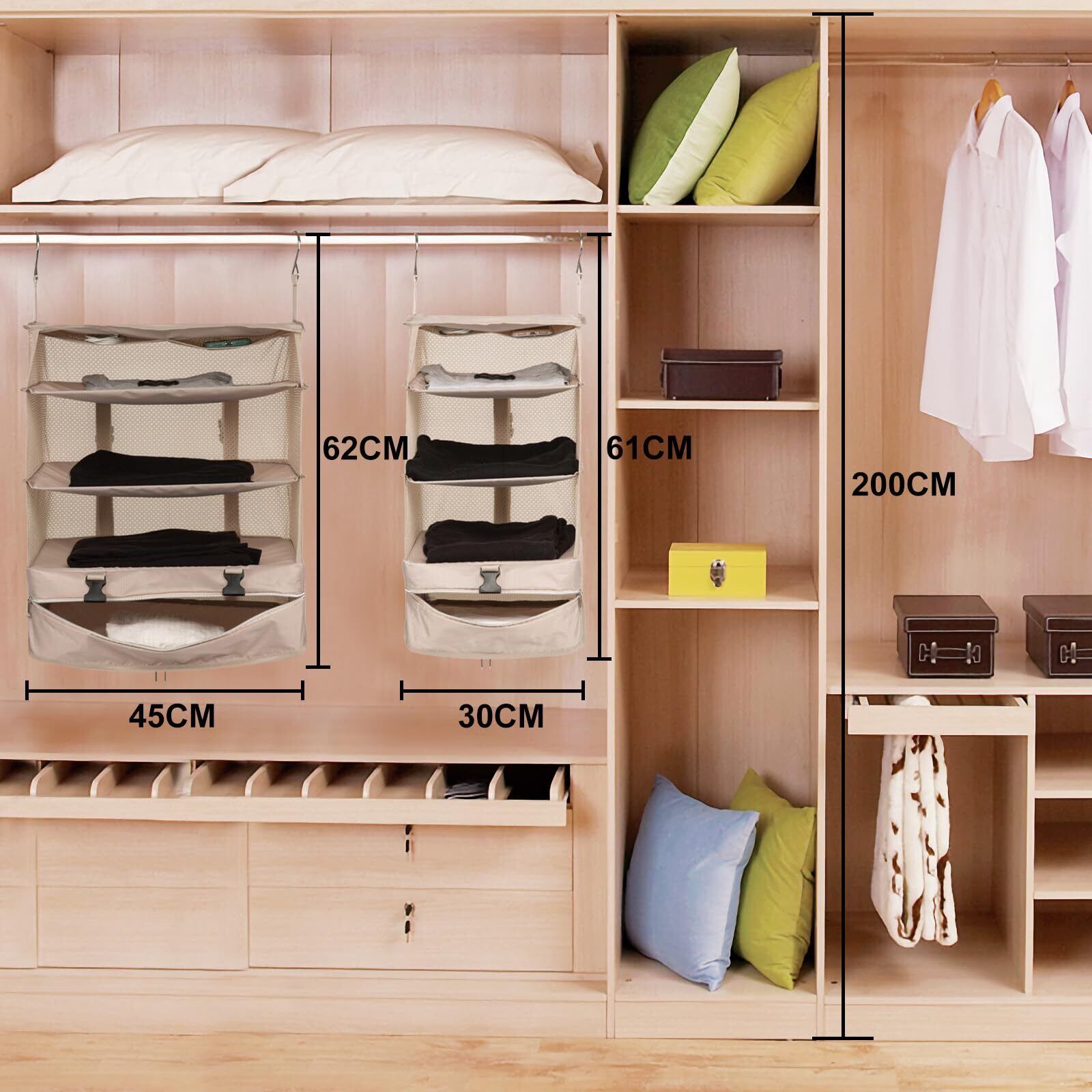 ① 【旅先でも自宅でも最適な収納ソリューション!】TABITORAの収納ボックスは、旅行や出張時に便利な吊り下げデザインで、衣類や小物を効率よく収納できます。クローゼットでも使えるため、日常の整理整頓にも最適です。ベージュの落ち着いた色合いが、どんなお部屋にもフィットします。