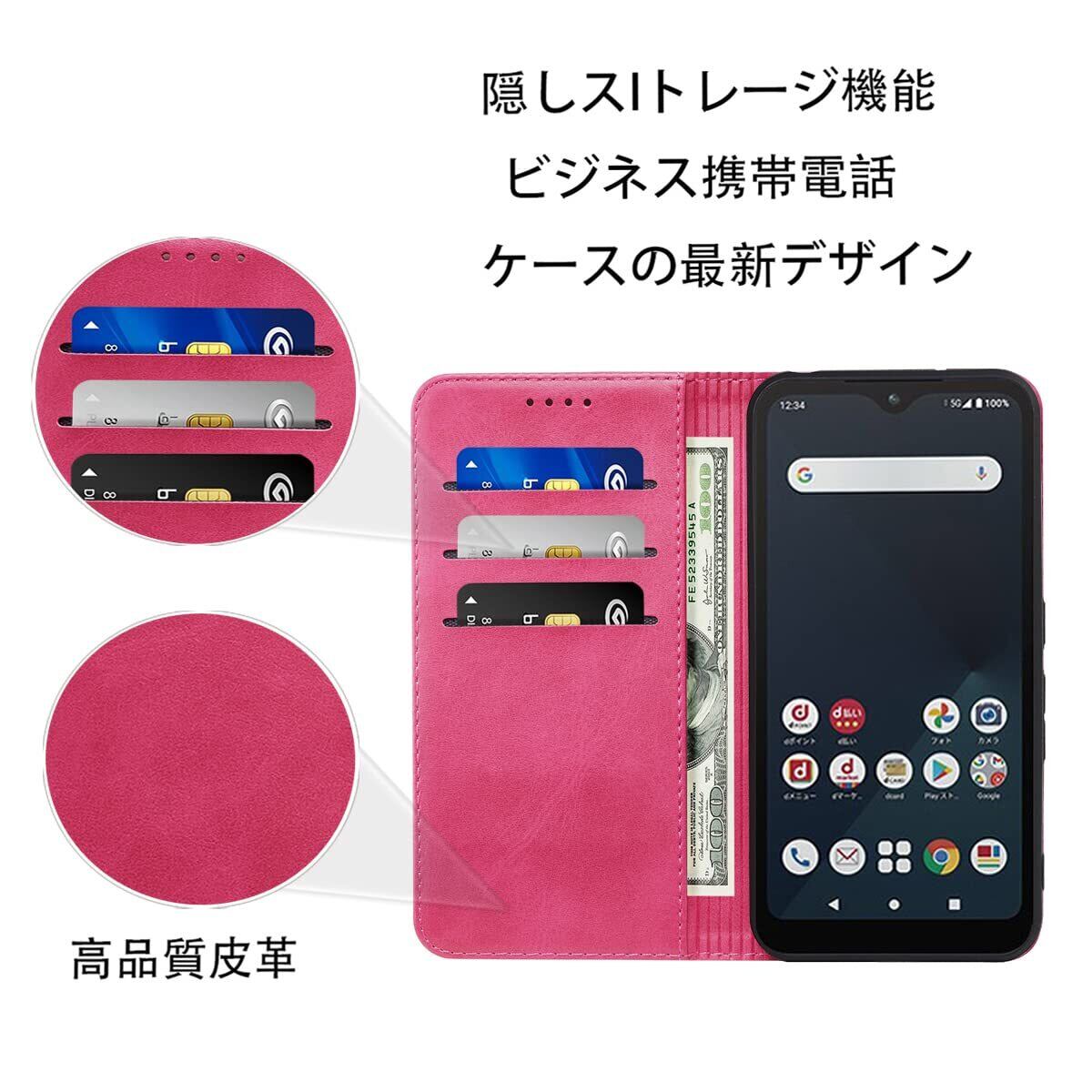 ① 【スタイリッシュな手帳型スマホケース!】Arrows We F-51B専用にデザインされた高質PUレザー製の手帳型ケースです。美しいローズレッドカラーが印象的で、持つだけでおしゃれな雰囲気を演出します。スタイリッシュな外観で、ビジネスシーンからカジュアルな場面まで幅広く対応!