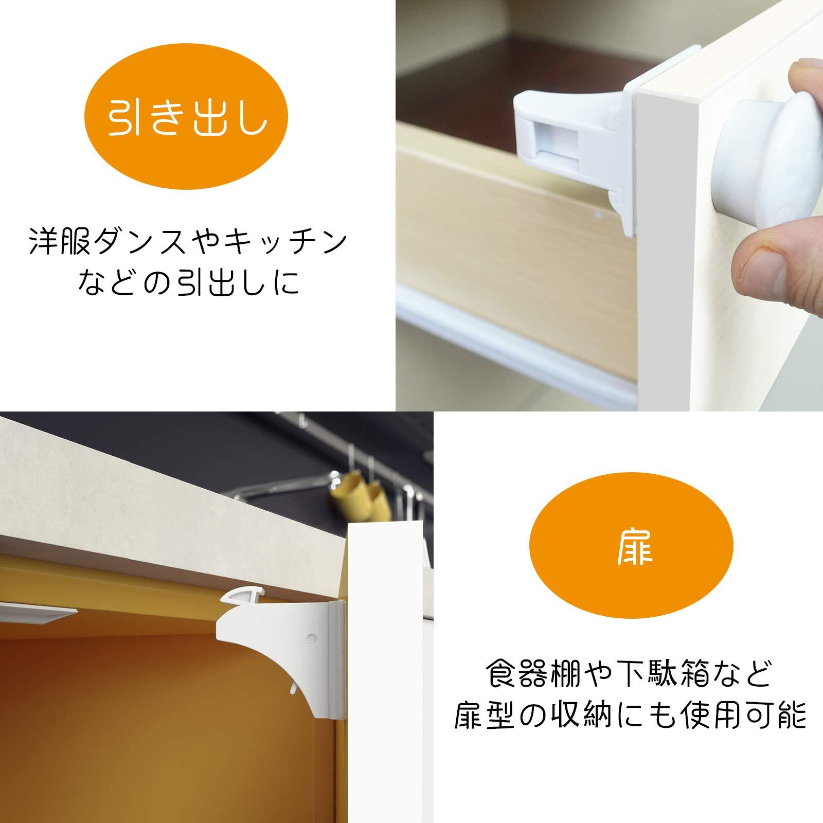 ② 【多機能なロックシステムで安心!】12個のロックと2つのマグネット式キー、2つの固定器がセットになっており、様々な引き出しやタンス、食器棚に対応しています。お子様の手の届かないところに大切なものを保管し、安全性を高めました。