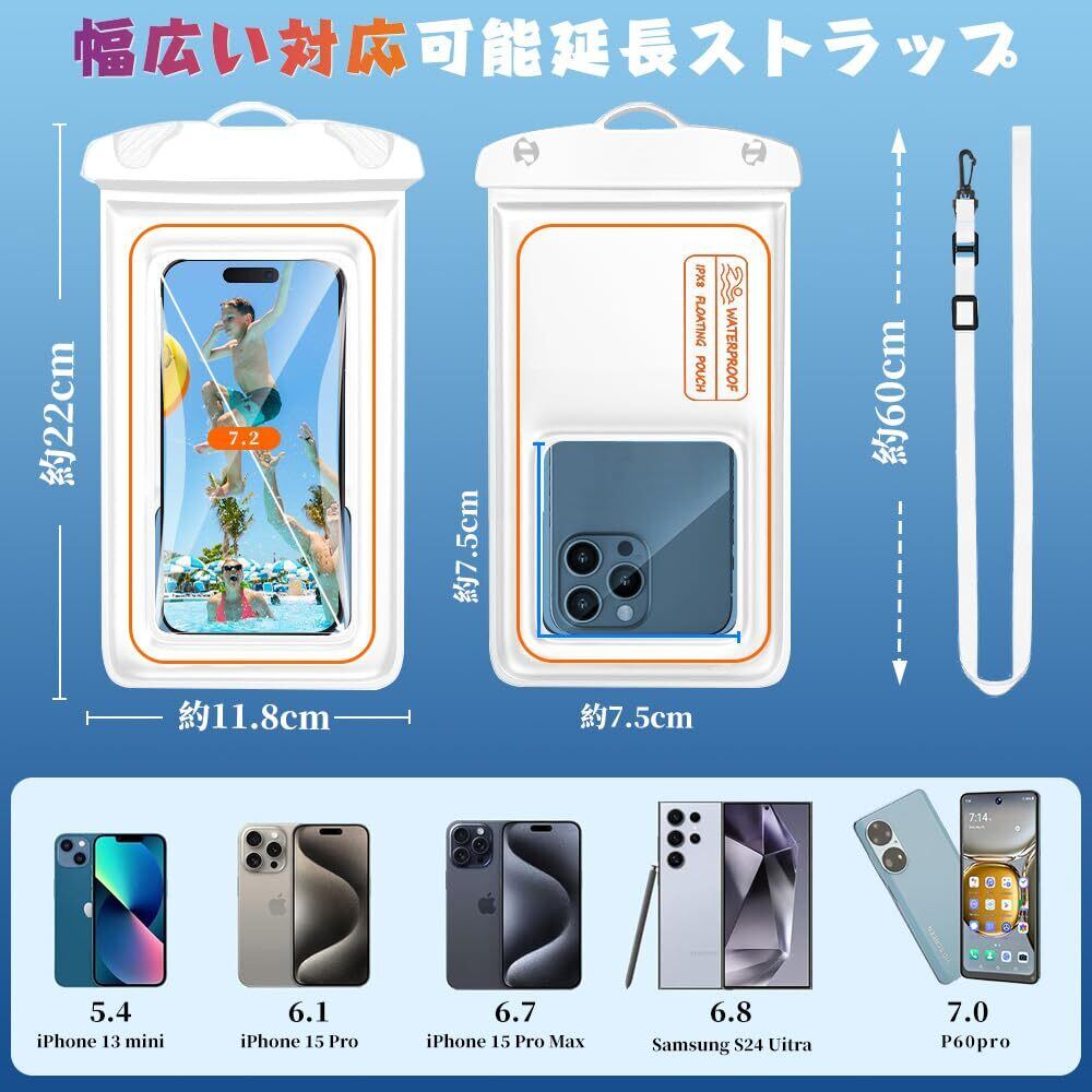 ❀【様々な場面で役たつ!7.2インチ以内】スマホを防水ケースに置いても、鮮明な写真やタッチ操作、通話ができるので、スマホを便利に使えます。雨日、ビーチ、温泉など場合ではスマホを防水カバーに収納したままで写真や撮影を気楽に遊んで楽しめます。いつでもどこでも綺麗な思いでの瞬間をシャッターを押せば逃がせない楽です。スマホに使う以外は、鍵、カード、現金などを保存できます。7.2インチの大きなサイズで、幅広い機種対応できる。iPhone全機種16、15、15Pro、15proMax、15plus、14、14Pro、14proMax、14plus、13、13Pro、13proMax、13mini、12ProMax、12、12Pro、SE、11、8、7、7Plus、8Plus...に全数対応。Galaxy、Xperia、Aquos、ZenFone、HUAWEIなどのAndroid機種も7.2インチ以下のスマホに全数対応。