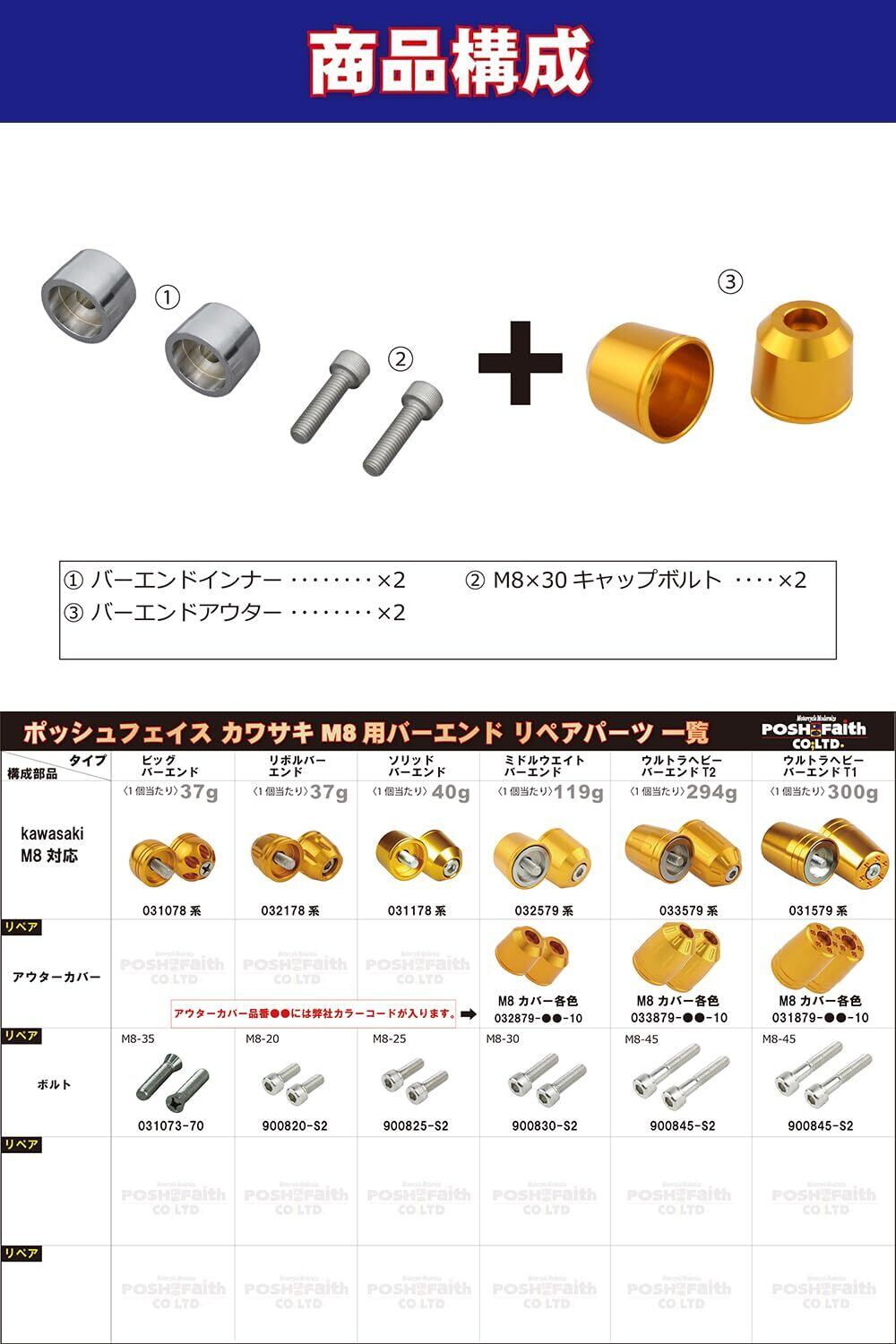 ポッシュフェイス(POSH FAITH) バイク用品 ハンドルバーエンド ミドルウェイトバーエンド カワサキ純正ハンドルM8タイプ ZRX1200DAEG 他 ゴールド 032579-04-10 バーエンドキャップ