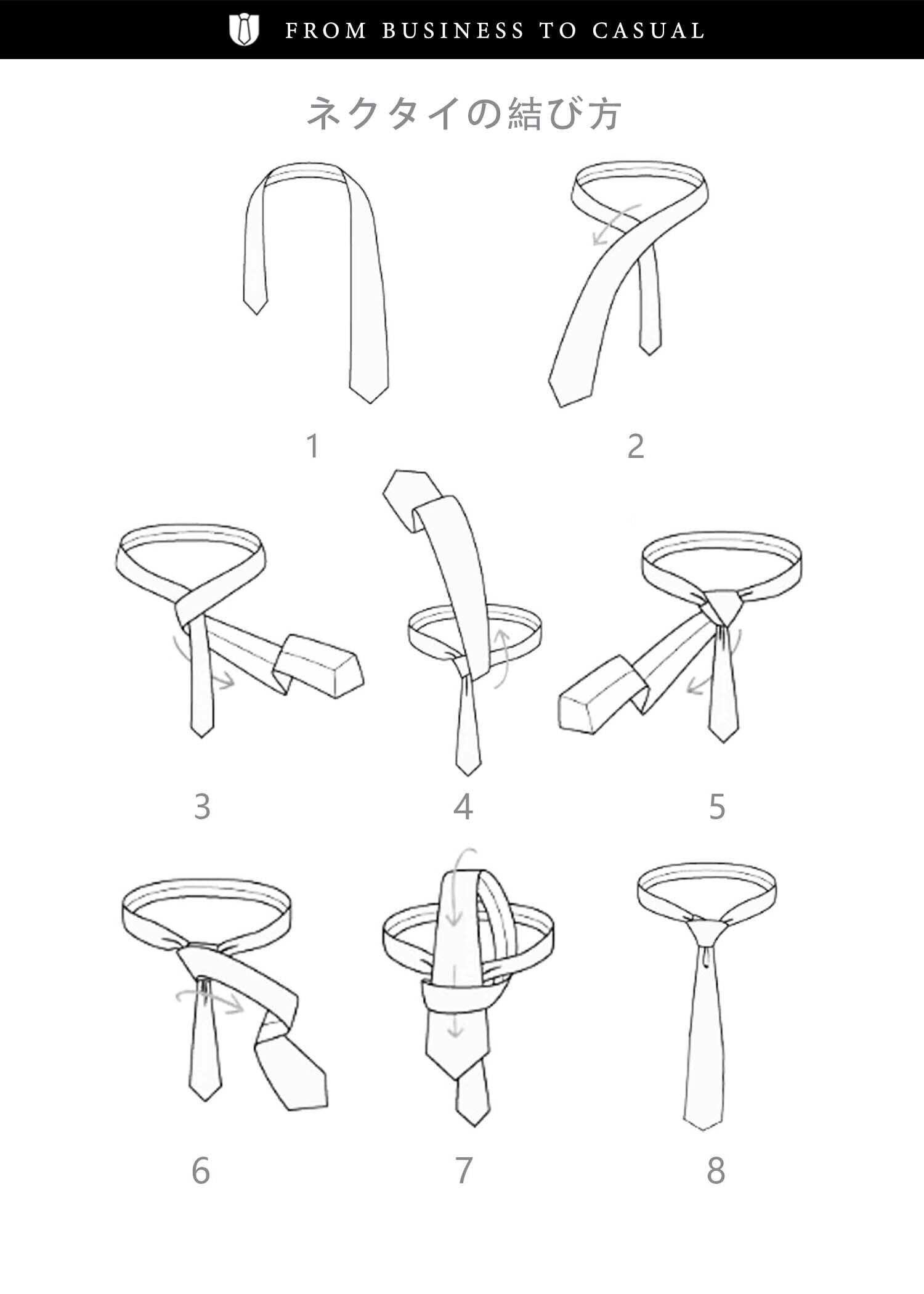④ 【簡単な結び方でストレスフリー!】ノットも簡単で、初めての方でもすぐに扱えます。気持ちよく着用いただけるよう、シンプルさが追求されています。急な出席にもスマートな印象を与えます。