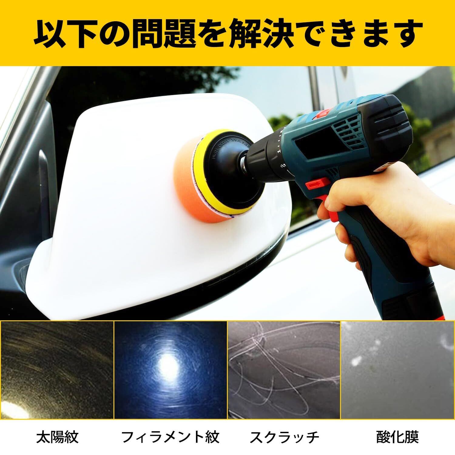 【耐久性抜群、洗浄効果最高】電動ポリッシャー ウレタンバフの耐久性が優れた、洗濯後の再利用が可能です。極細用スポンジバフは優れた洗浄効果を発揮し、目が見えないごく小さな汚れを効果的に取り除きます、愛車の水垢落とし・磨きに!