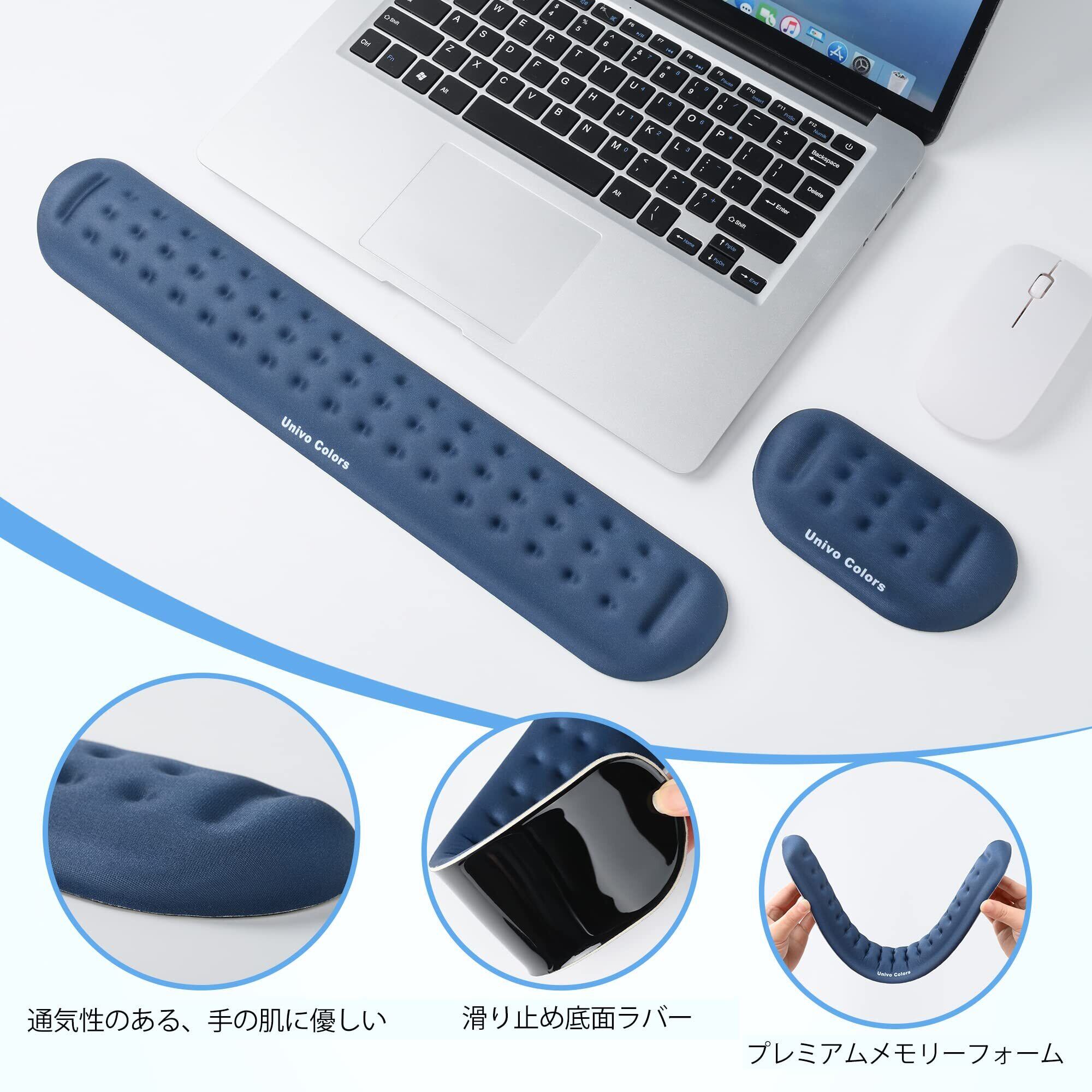 UnivoColors マウスリストレスト/キーボードリストレスト2点セット 手首置き 疲労低減 柔らかい素材 ストレス解放 マッサージホール付き 通気性 あり 肌に刺激なし 人間工学デザイン(ネイビー)