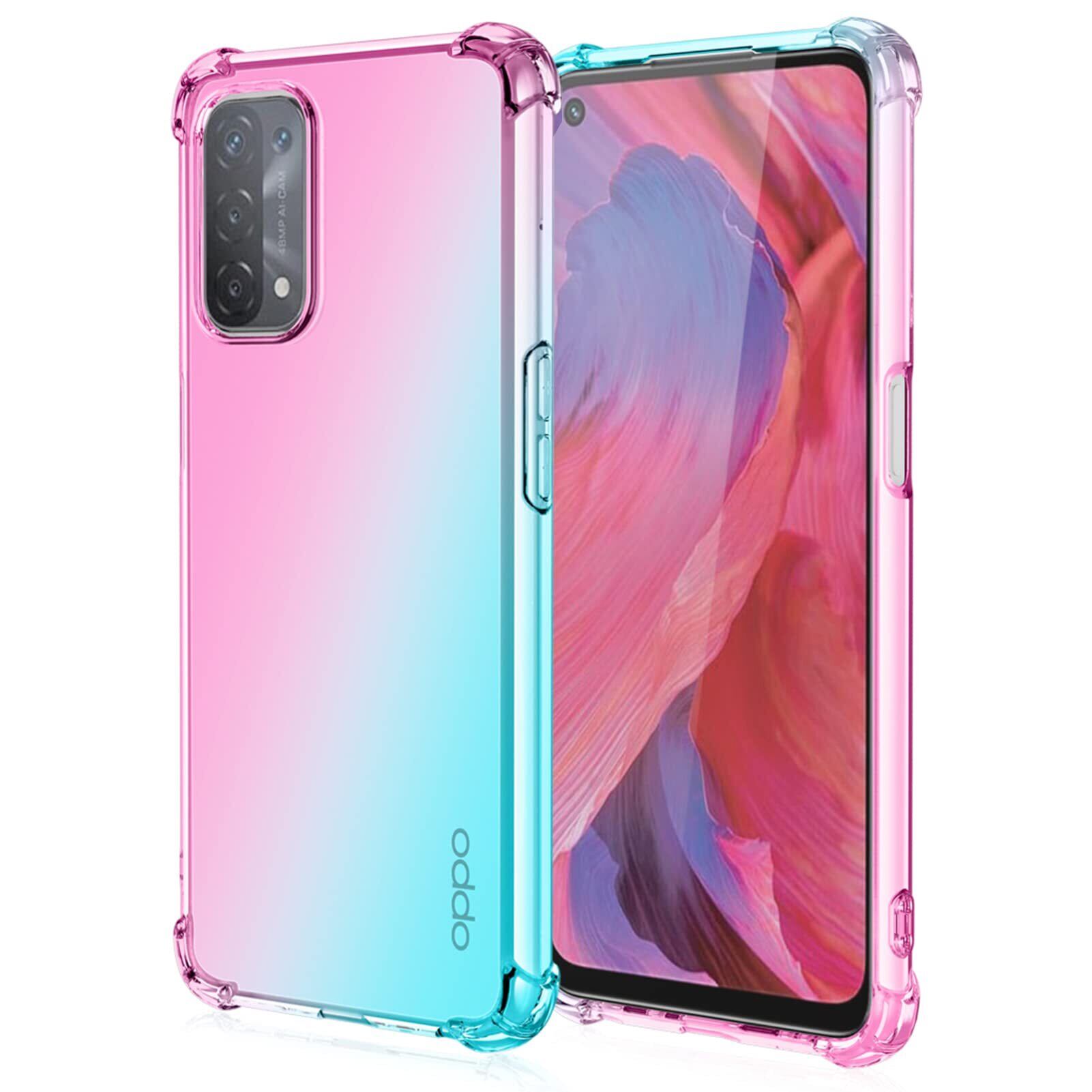 と互換性のある OPPO A54 5G 用のケース クリア 耐衝撃 透明 グラデーション色 TPU バンパー 薄型 Qi充電対応 擦り傷防止 軽量 PC ストラップホール付き グラデーション 防塵 耐久 人気 カバー(ピンク/緑)RP93-JB-A54-5G-FL