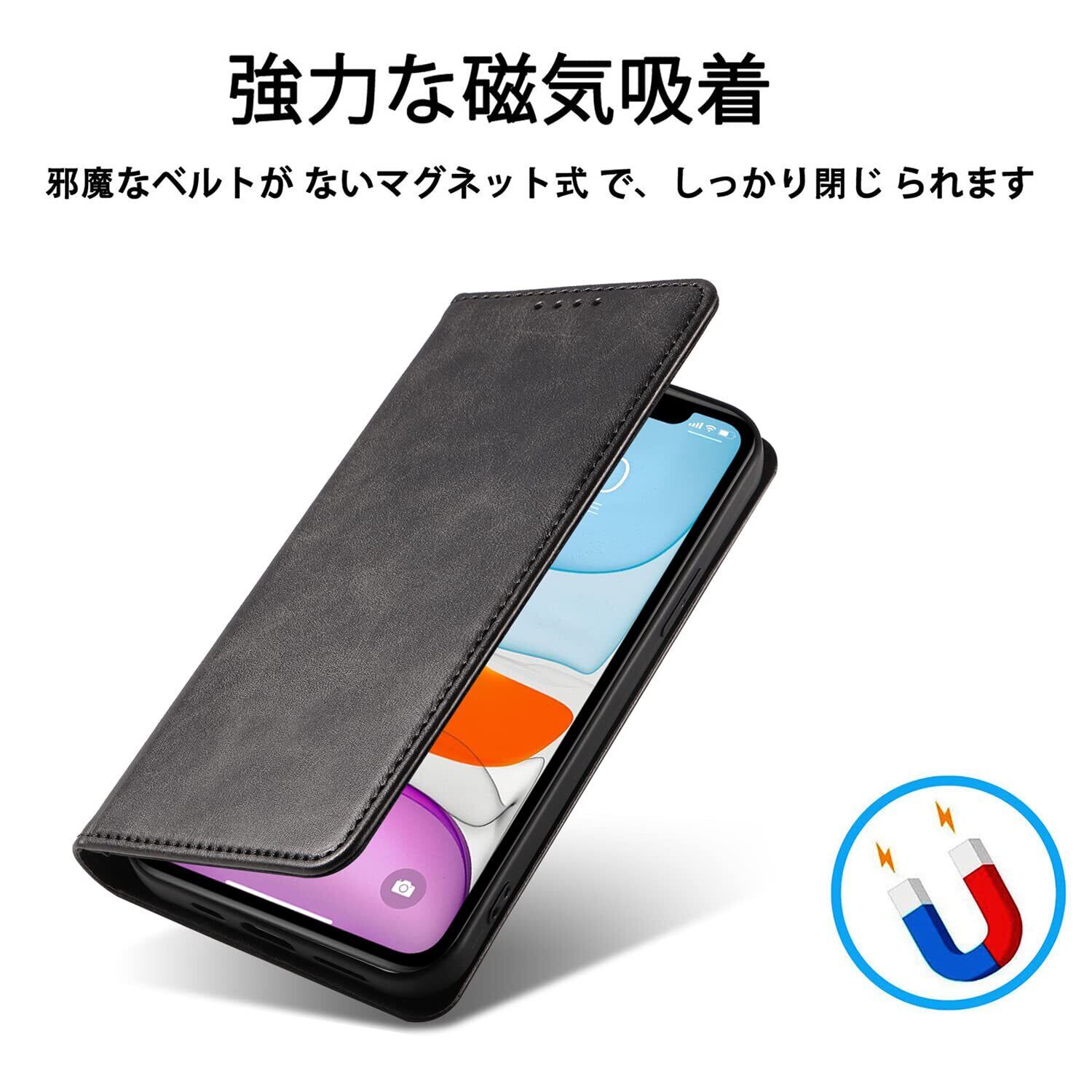 【在庫処分】iPhone 11 ケース イフォン11 スマホケース 手帳型 携帯カバー レザー 耐衝撃 軽量 着脱しやすい 放熱性 マグネット式 カード収納 スタンド機能 iphone 11 対応 360度保護 PinLiSheng (ブラック, iphone 11)