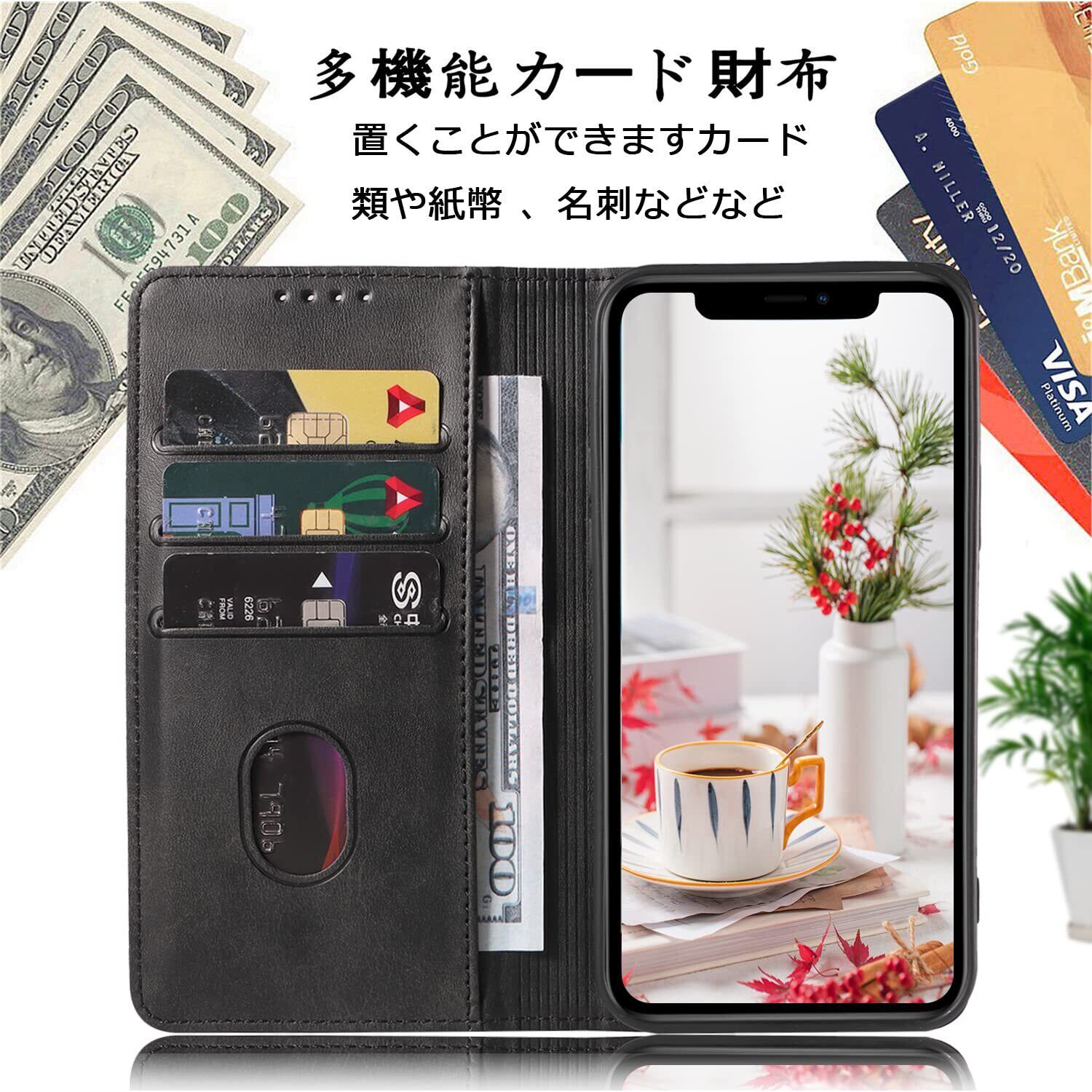 ④ 【放熱性に優れた設計で、長時間の使用でも安心!】この手帳型ケースは、放熱性にも配慮されているため、スマホが熱くなりすぎる心配が少なく、安心して使用できます。デザインだけでなく、機能性も両立したケースです。