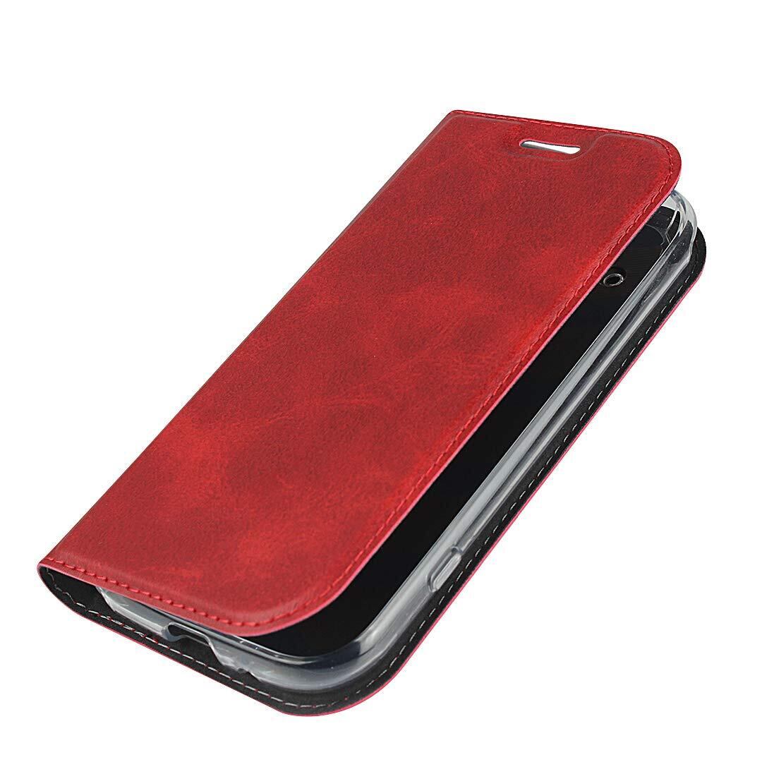 Eastwave for Fujitsu 富士通 らくらくスマートフォン me(F-01L)ケース docomo らくらくスマートフォン F-42A ケース F01L F42A 通用 カバー for fujitsu カバー PUレザー カード 収納 横置きスタンド 機能— レッド