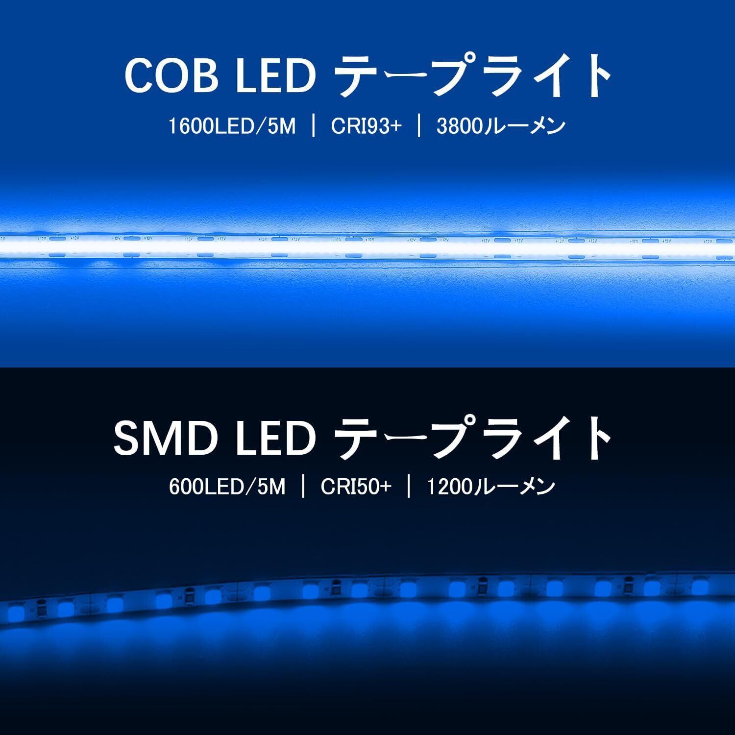 【2022最新】ledテープライト COB 高密度 usb給電 2m テープ照明 10段階調光 320LEDs/m カット可能 両面テープ設置 高輝度 テープライト ブルー