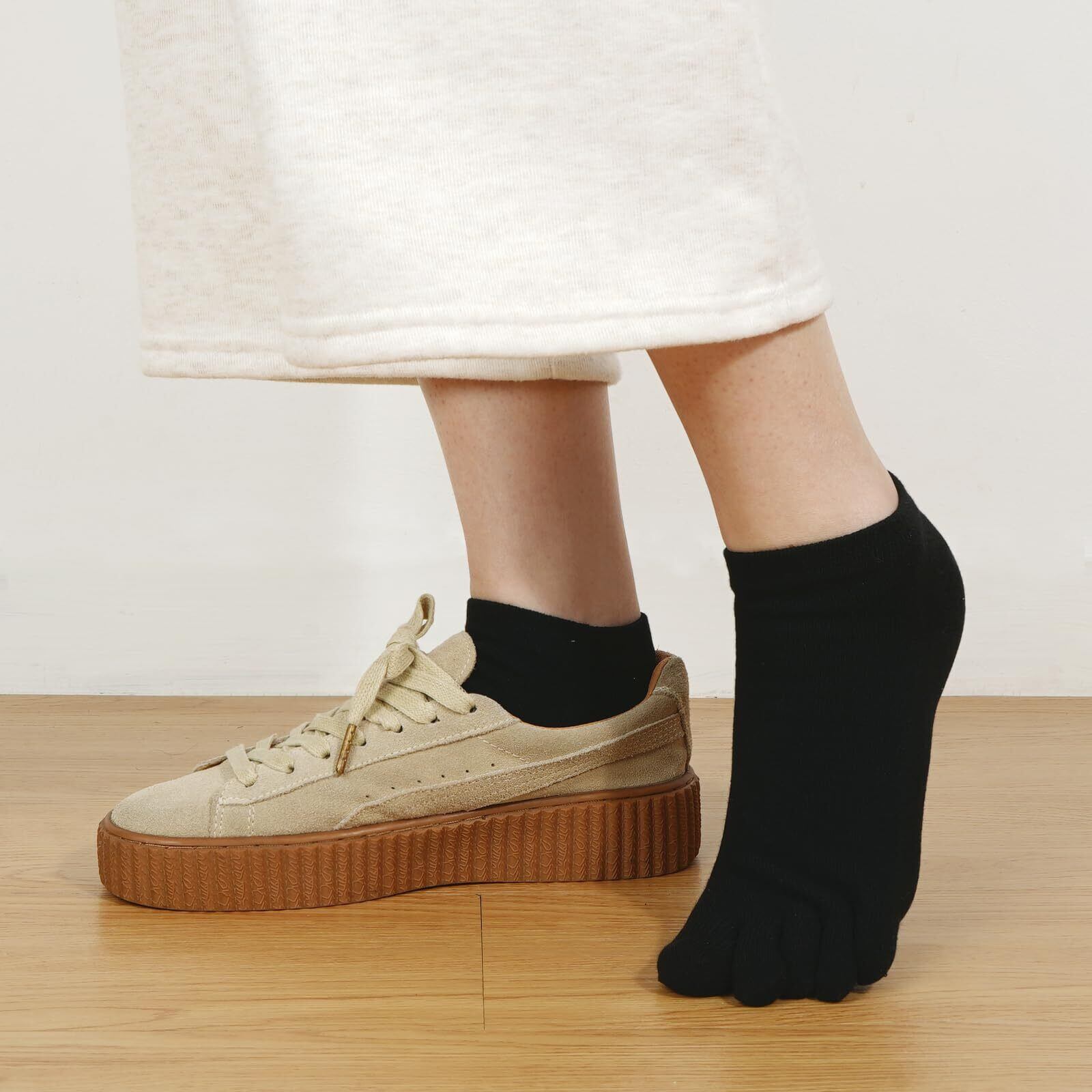 【伸縮性がよい】:ストレッチ性に優れた高品質綿混素材が足を優しく包み込んでいます。アンクルラインにフィットするくるぶしカットデザインで、ずり落ち防止効果があります。5本指を別々に包み込んた五本指靴下 レディースは、運動時の動きを妨げない柔軟性を実現しました。洗濯後も型崩れしにくい耐久性を備えております。