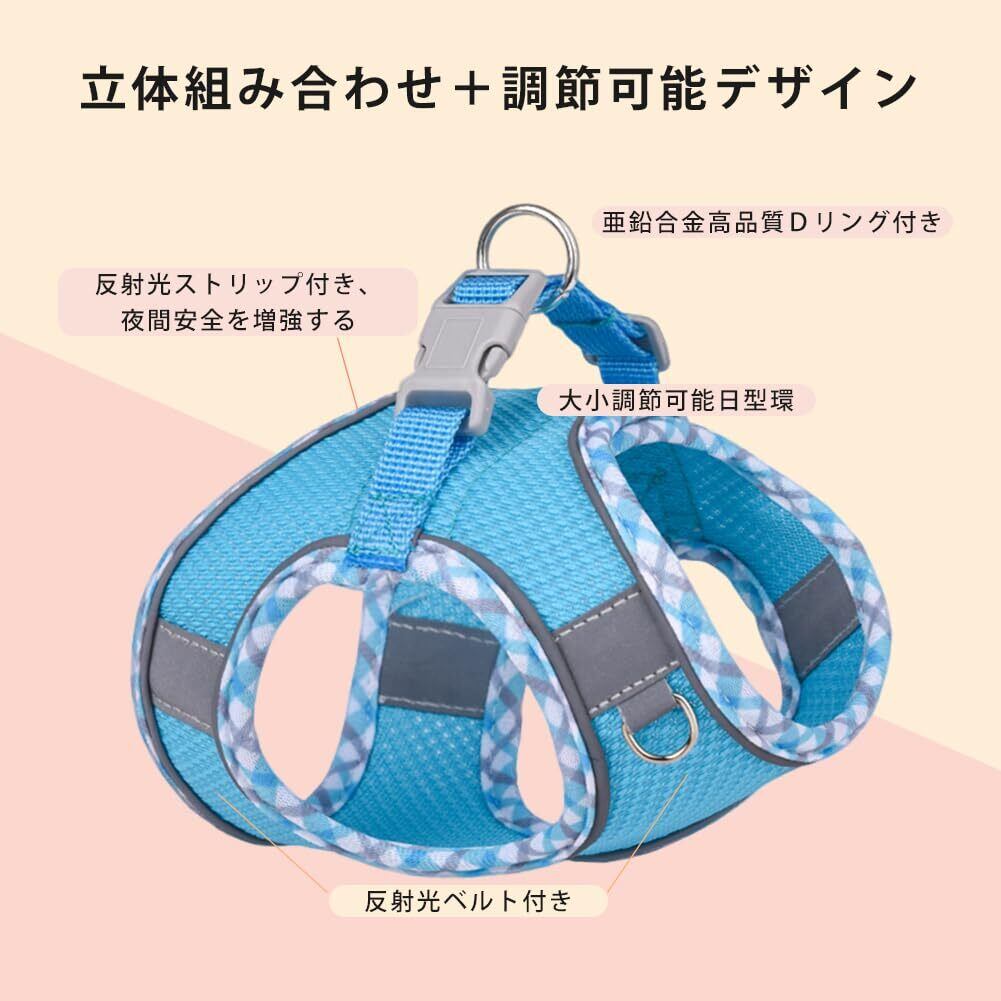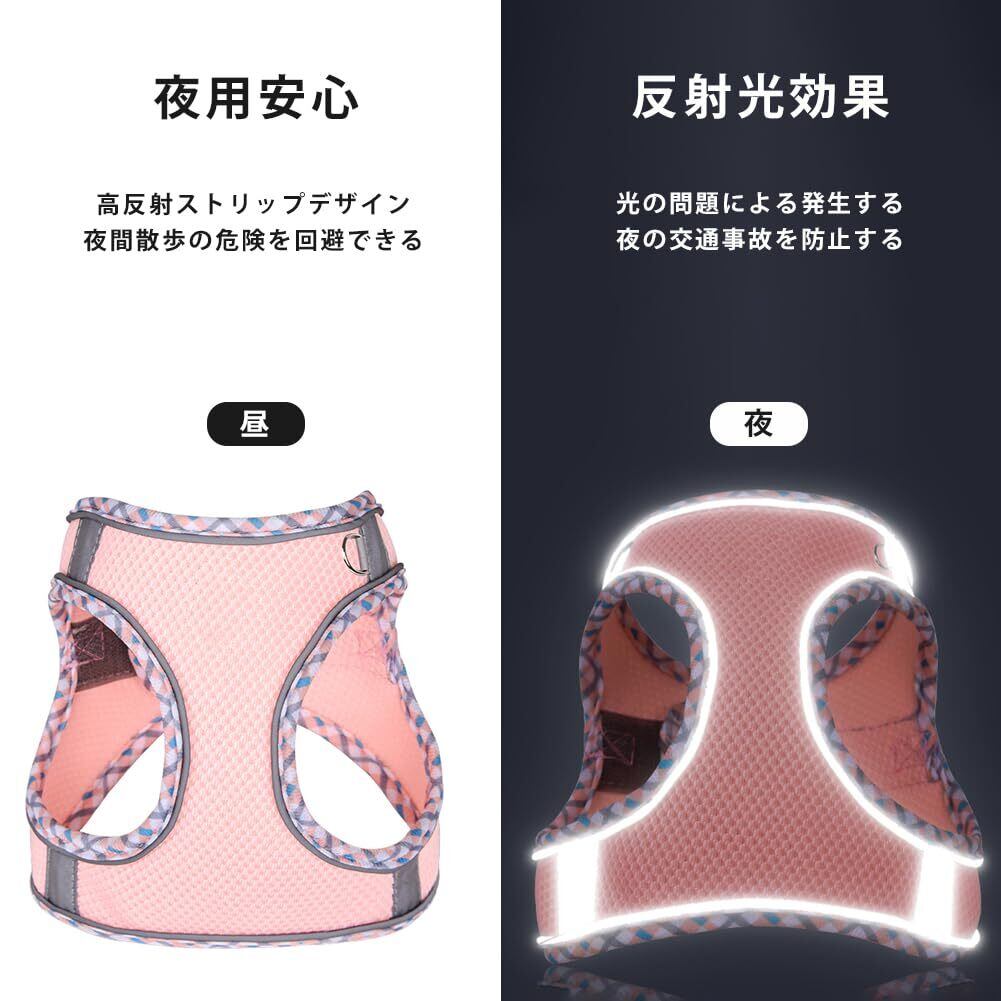 PET 小型犬 猫 中型犬 ハーネス リードセット 牽引ロープ 胸当て 胴輪 ドッグウエア 反射光ストリップ付き メッシュ おしゃれ 調節可能 お散歩 着脱簡単(グリーン S)
