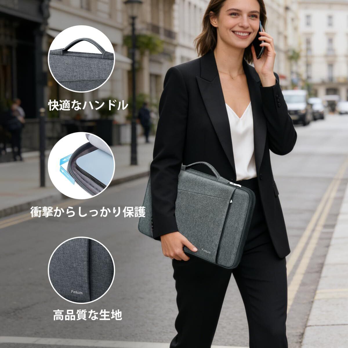 【大容量】パソコンカバンのデザインはシンプルですが収納が充実しています。外側に2つのポケットも付き、携帯電話、充電器、イヤホン、ケーブルやノートブックなどの小物をしっかり整理整頓でき、外出先でもご安心いただけます。